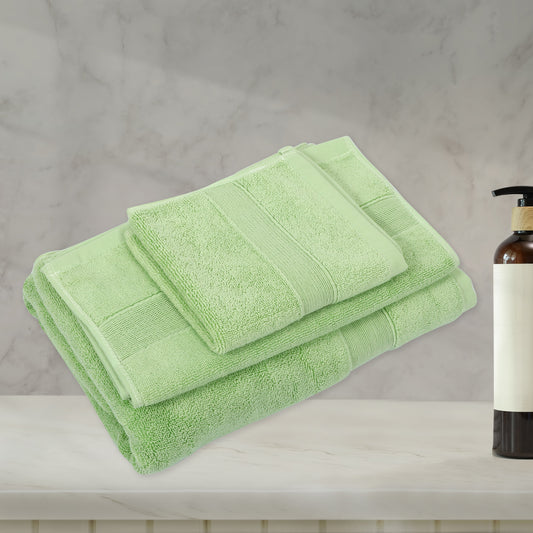 3 Pcs Cotton Bath Towel, Plain Soft Absorbent Towels Set, Green