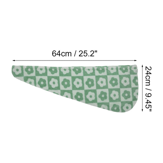1 Pc Women Soft Checkered Flowers Hair Towel Wrap for Bathroom Green