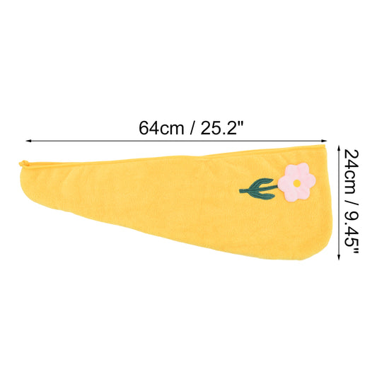 1 Pc Women Soft Flowers Hair Towel Absorbent Hair Wrap for Bathroom Yellow