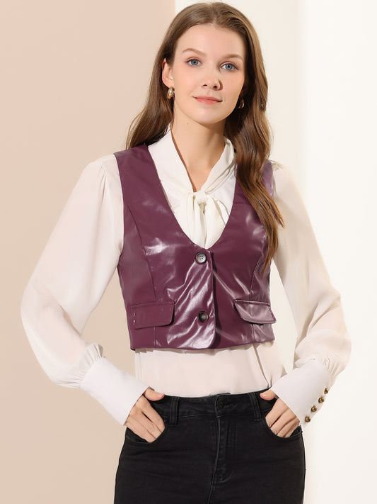 Women's Racerback Suit Vest Sleeveless Versatile PU Faux Leather Vest