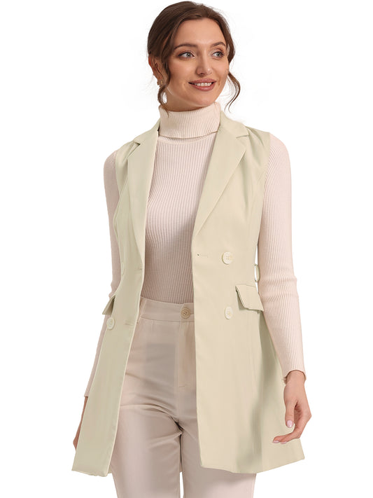 Women's Sleeveless Blazer Work Double Breasted Lightweight Belted Long Trench Vest