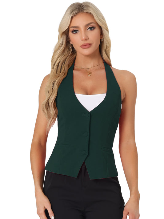 Women's Waistcoat Halter Neck Vintage Sleeveless Button Down Dressy Suit Vest Jacket