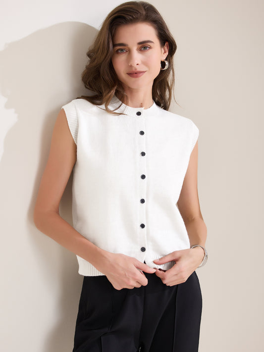 Women's Sweater Vest Sleeveless Crew Neck Lightweight Button Down Crochet Chunky Knit Top