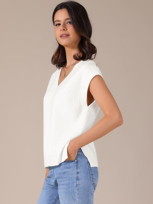 Women's V Neck Sweater Vest Ribbed Sleeveless Slit Stretchy Basic Casual Fall Winter Tank Top