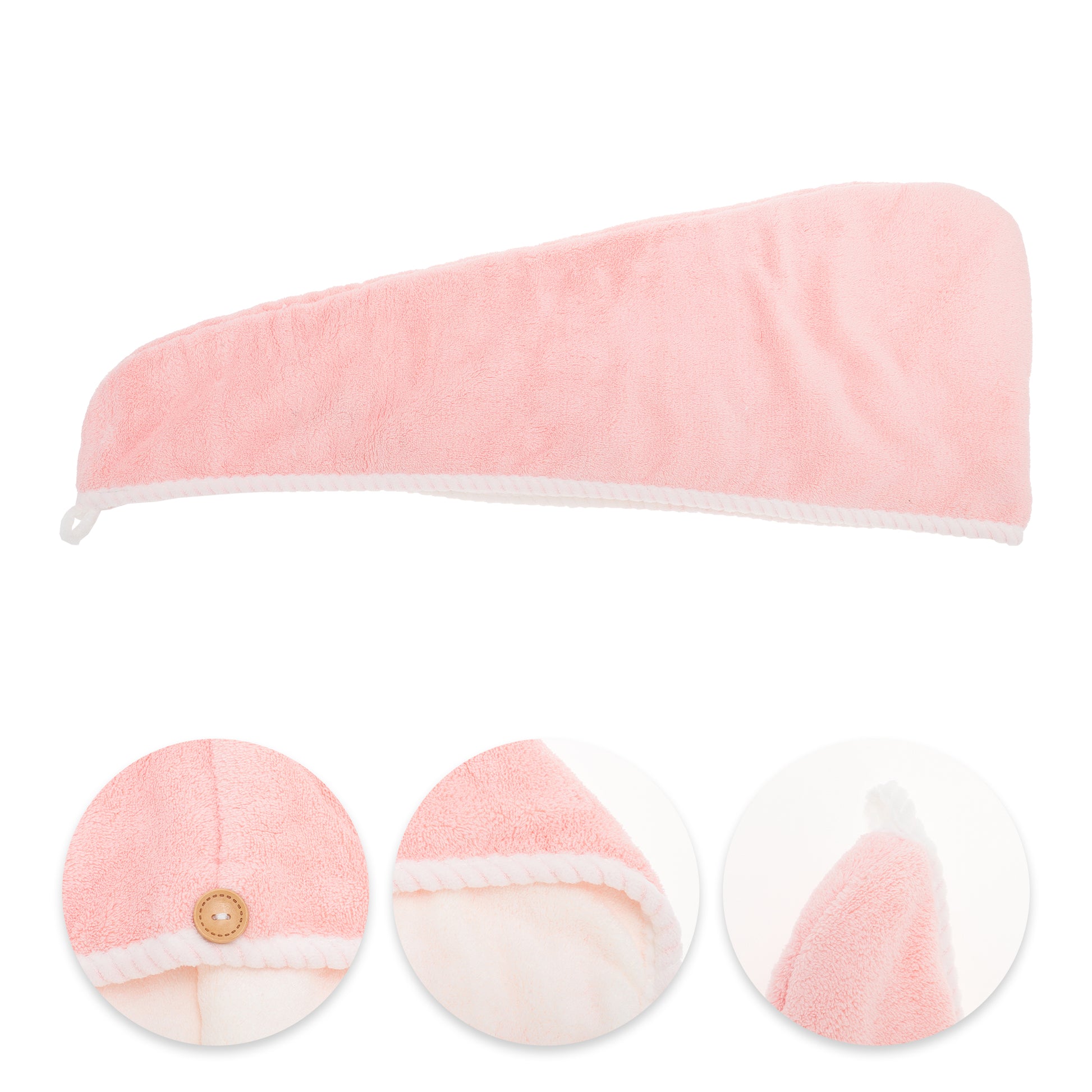 1 Pc Water-absorbent Double Layer Hair Drying Towel for Bathroom Pink, White