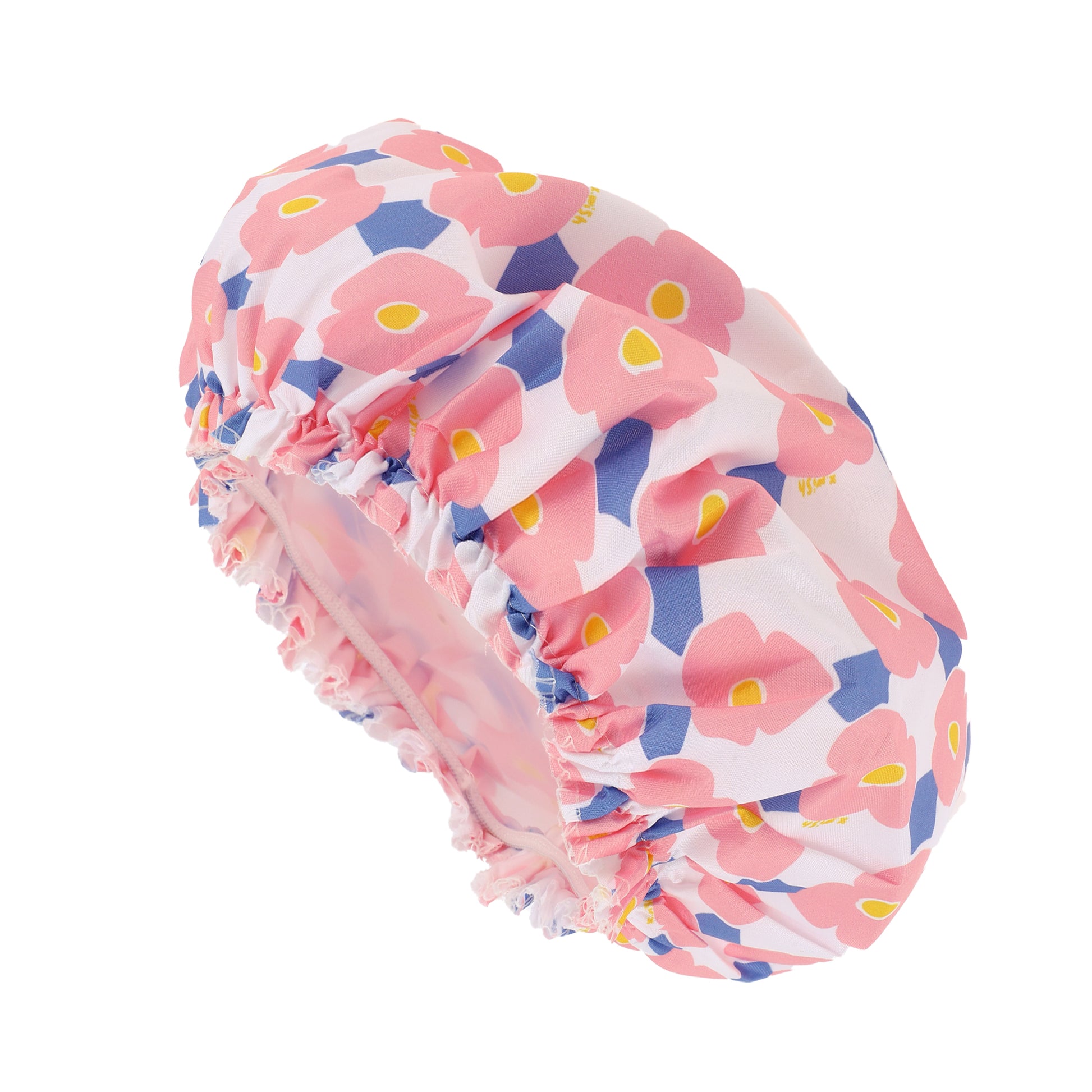 1 Pc Women's Flower Pattern Shower Cap Hair Cap for Bath Pink