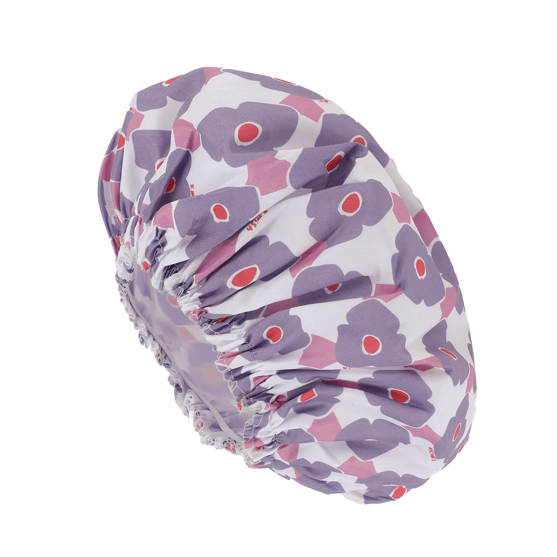 1 Pc Women's Flower Pattern Shower Cap Hair Cap for Bath Purple
