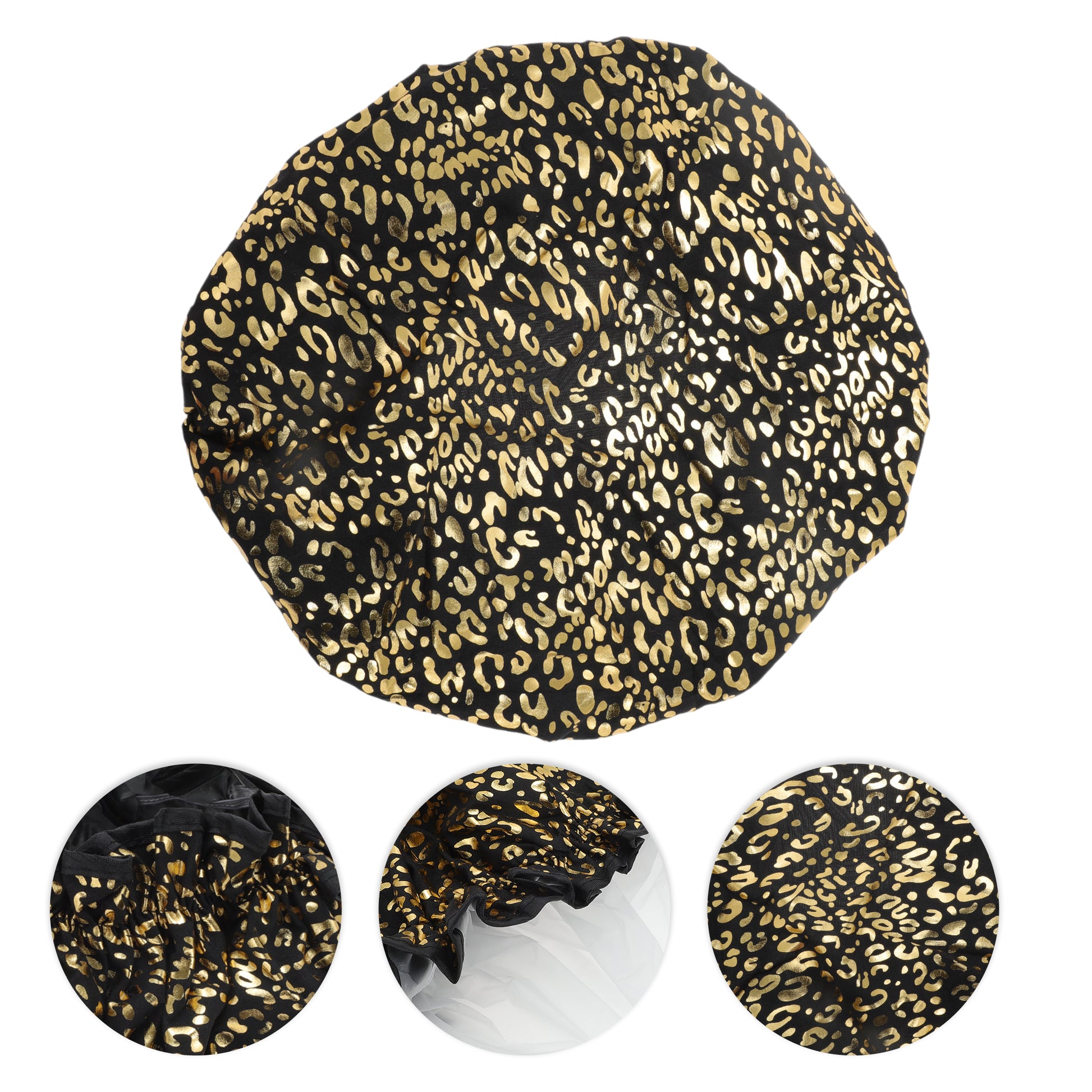 1 Pc Women's Shiny Gliding Pattern Shower Cap Bath Cap Black Gold Tone