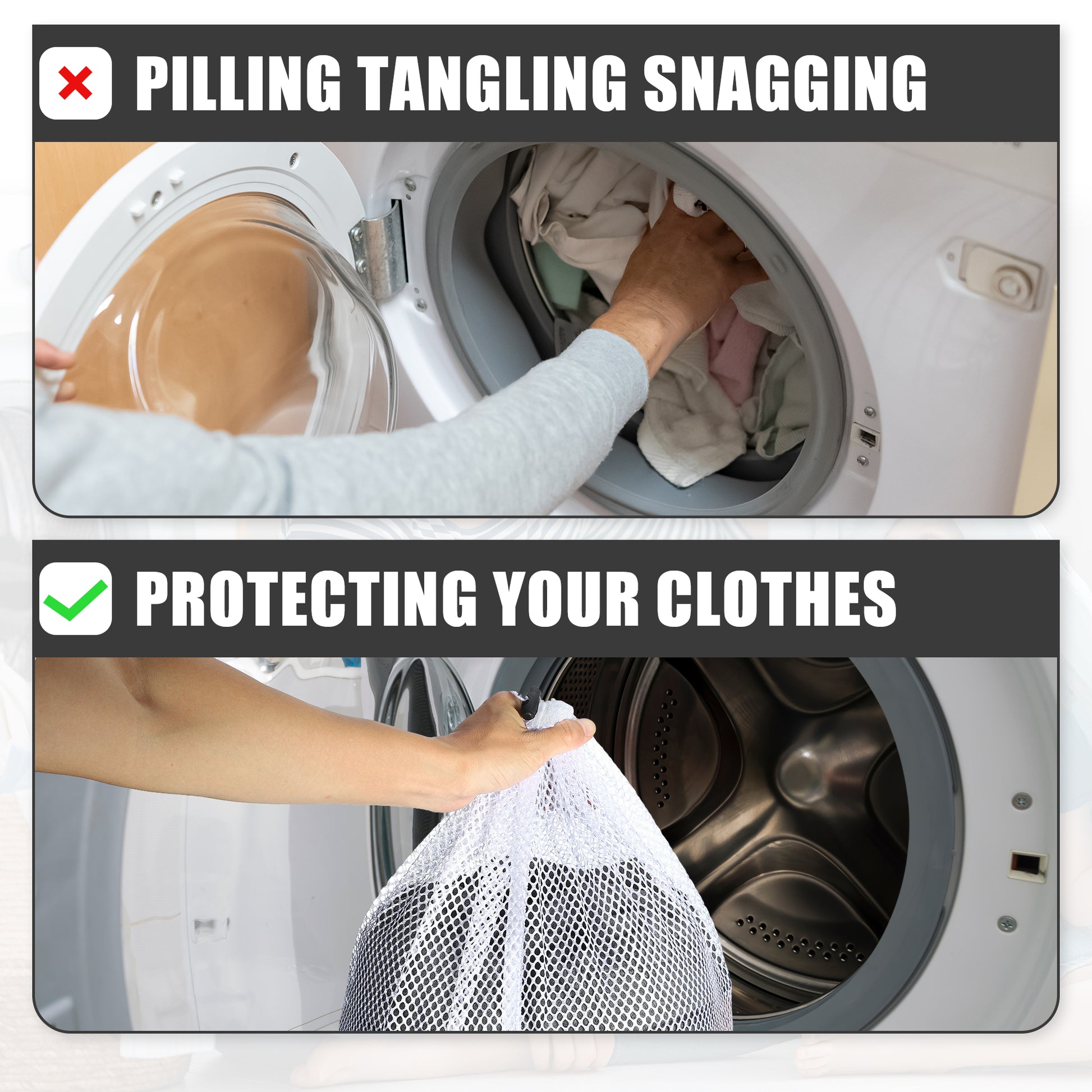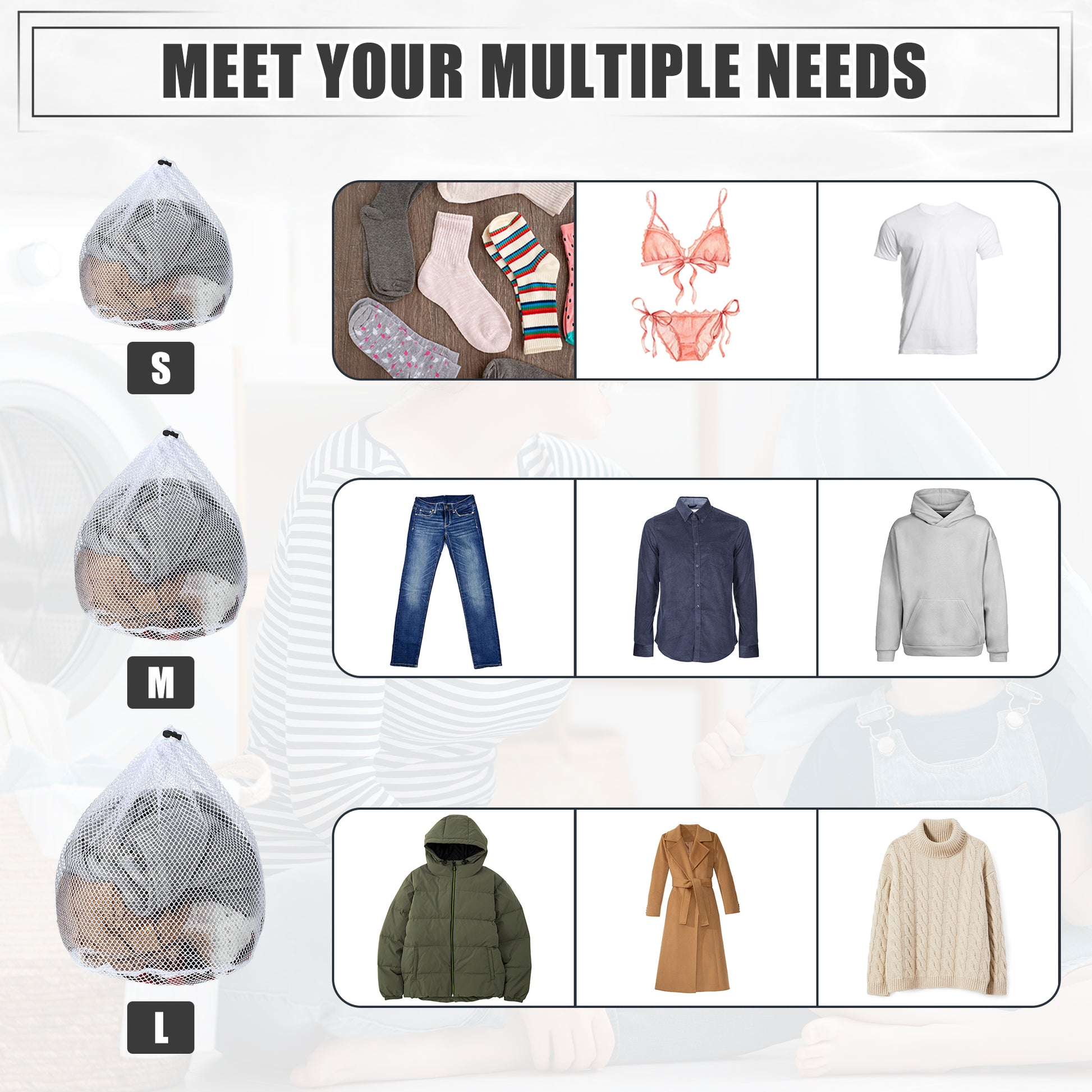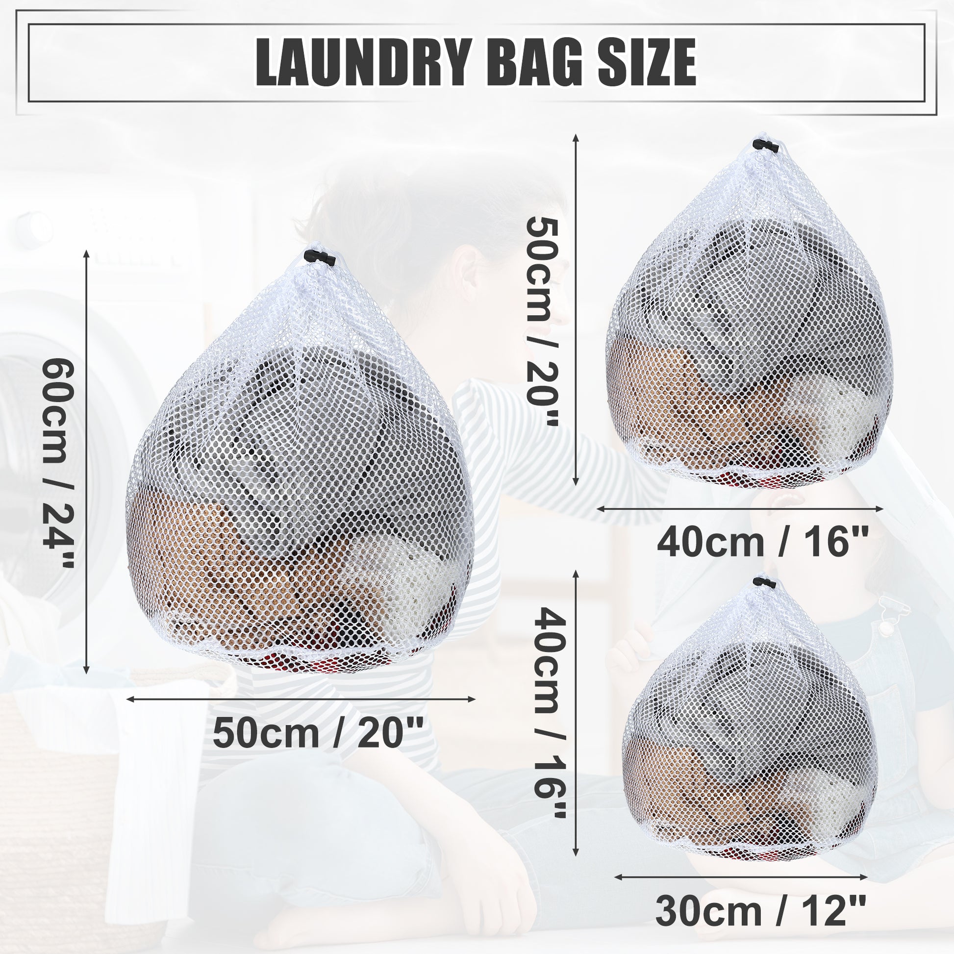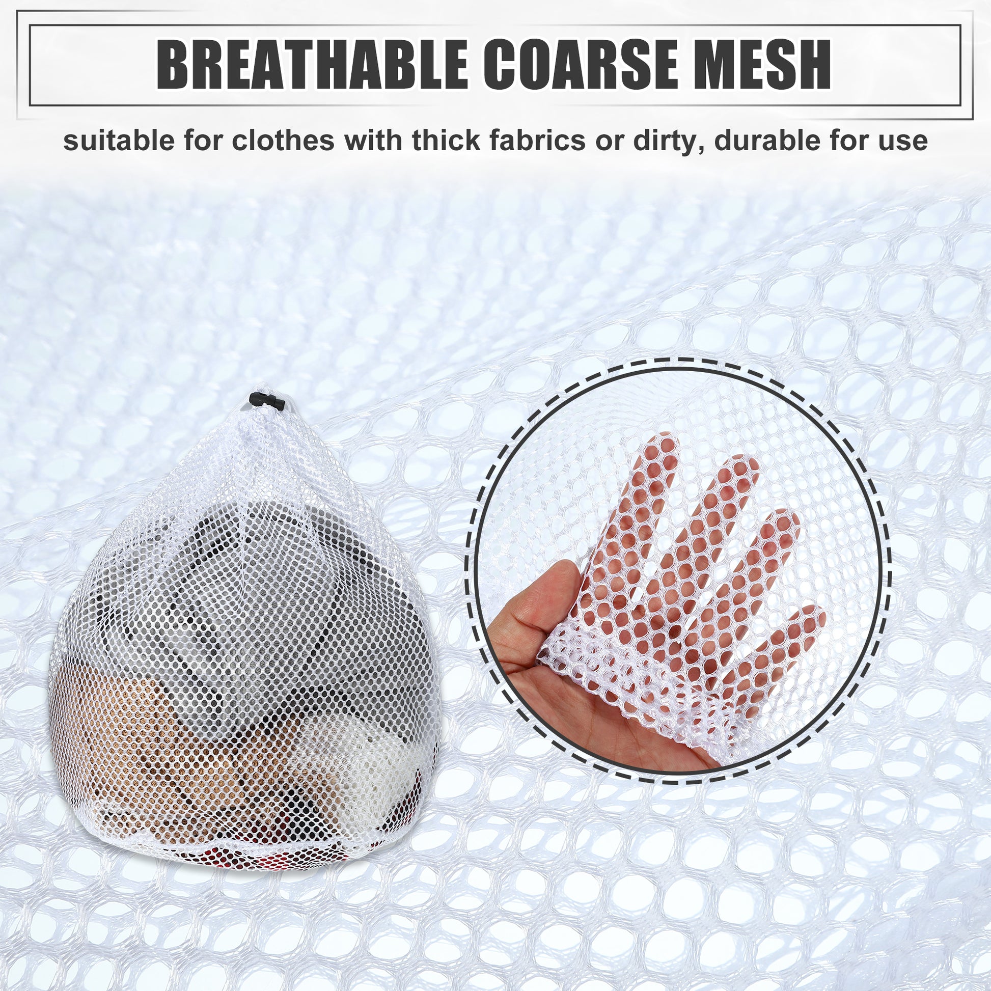 1 Set Laundry Bags, Coarse Mesh Wash Bags with Drawstring White
