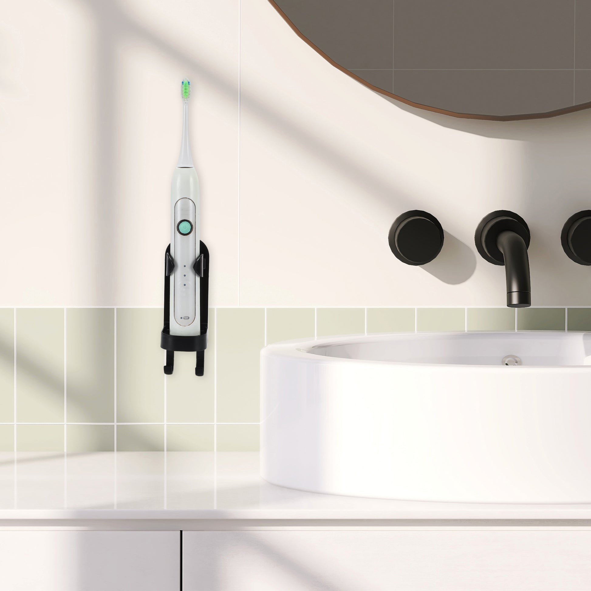 2 Pcs Wall-mounted Electric Toothbrushes Holder for Bathroom, 5.28"x1.73"x1.81" Black