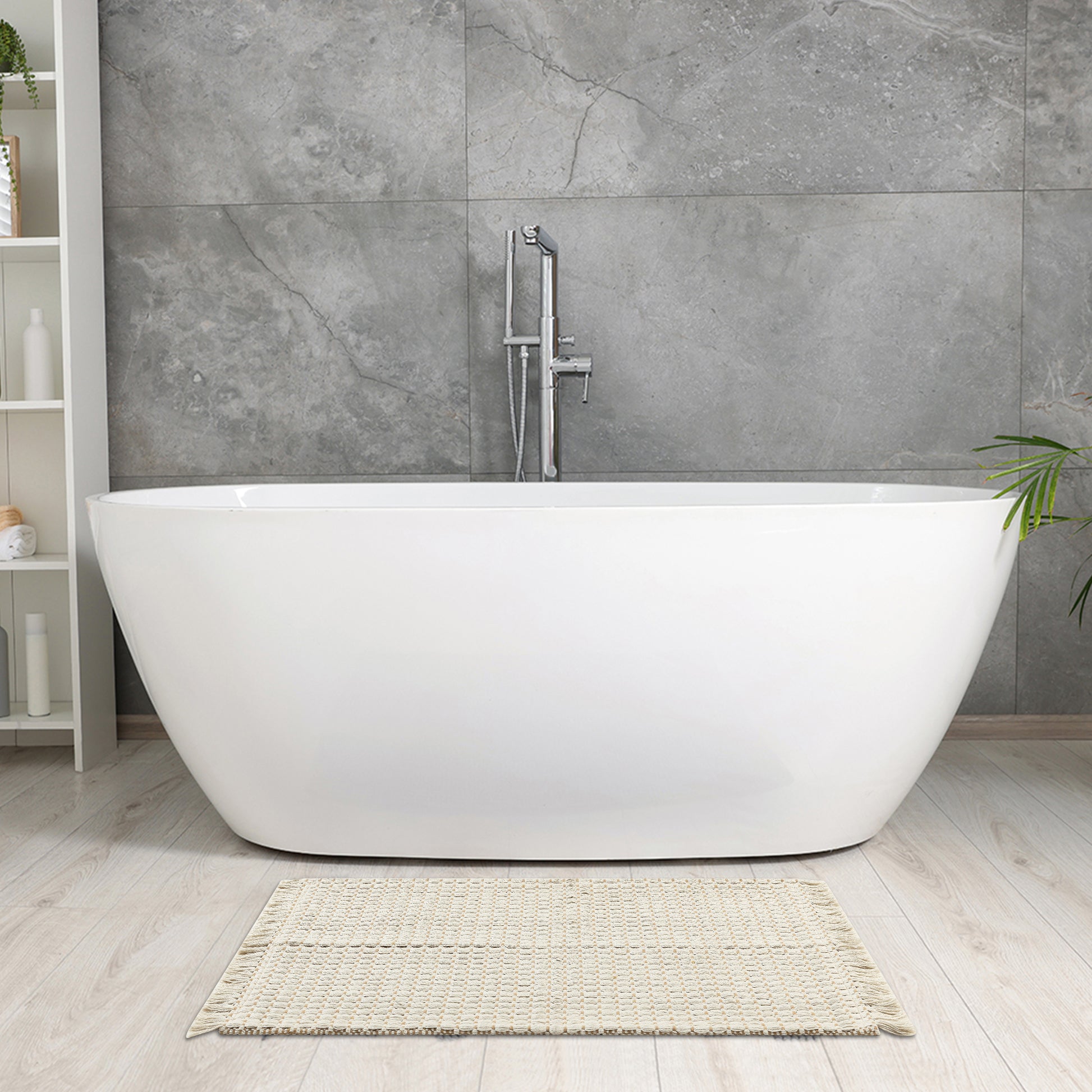 Boho Bathroom Rug, Woven Tecture Rug for Bedroom Throw Rug with Fringe