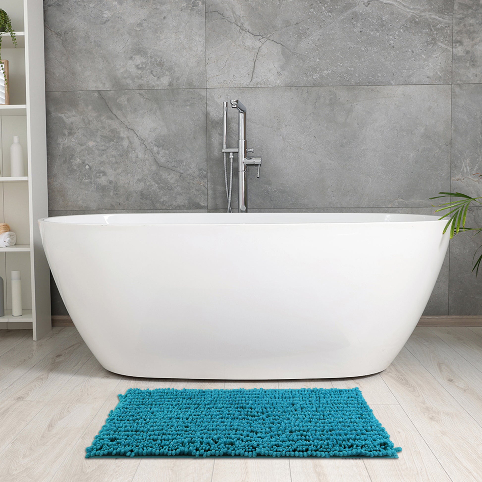 Chenille Bathroom Rugs Non-Slip Bath Mat, Plain Washable Soft Bath Mats