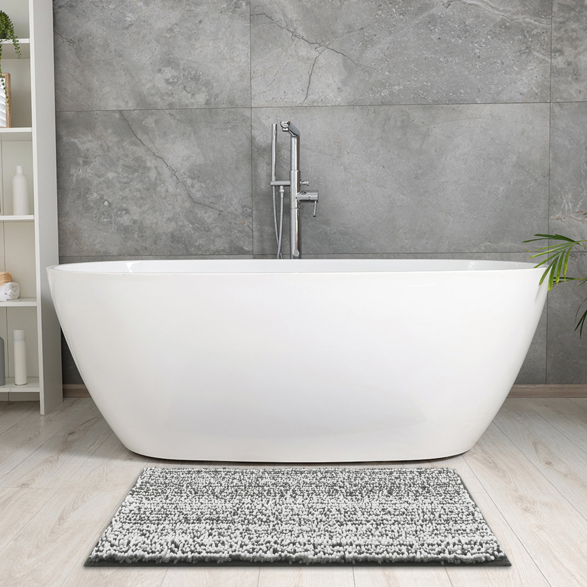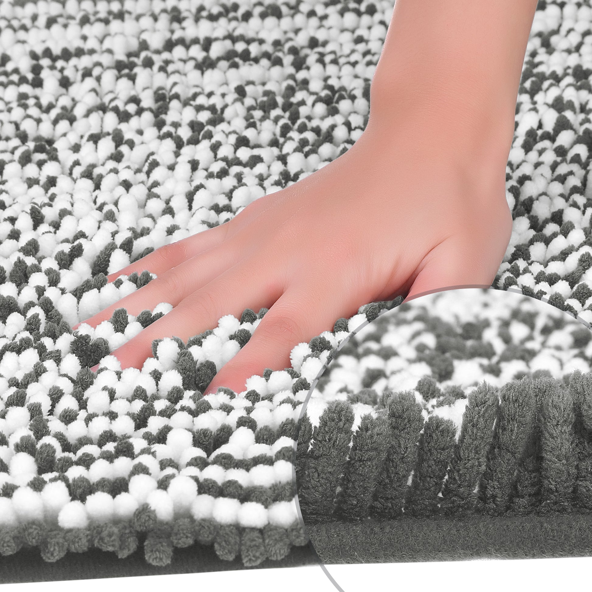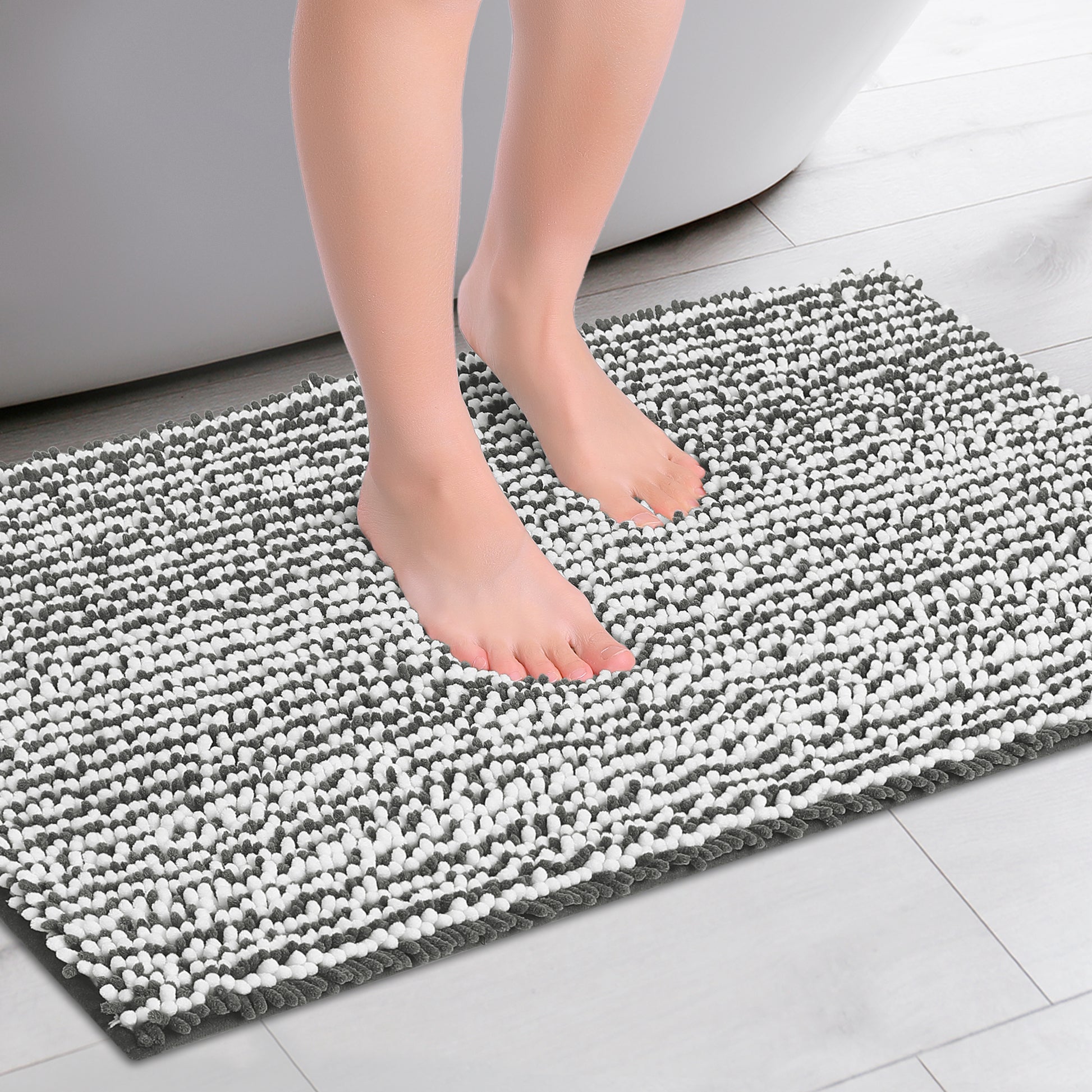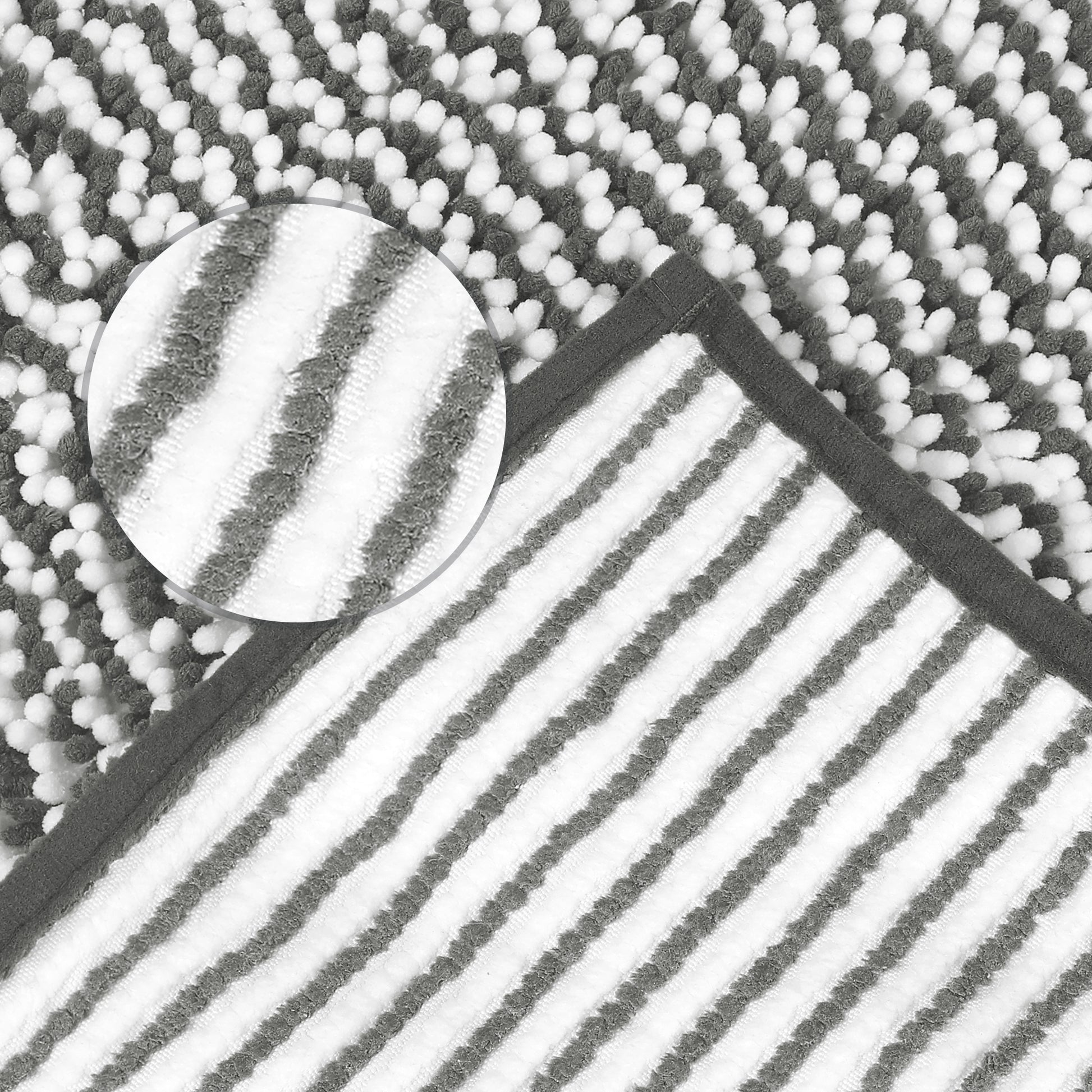 Chenille Striped Bathroom Rugs, Extra Thick and Absorbent Non-Slip Soft Plush Shaggy Bath Mats