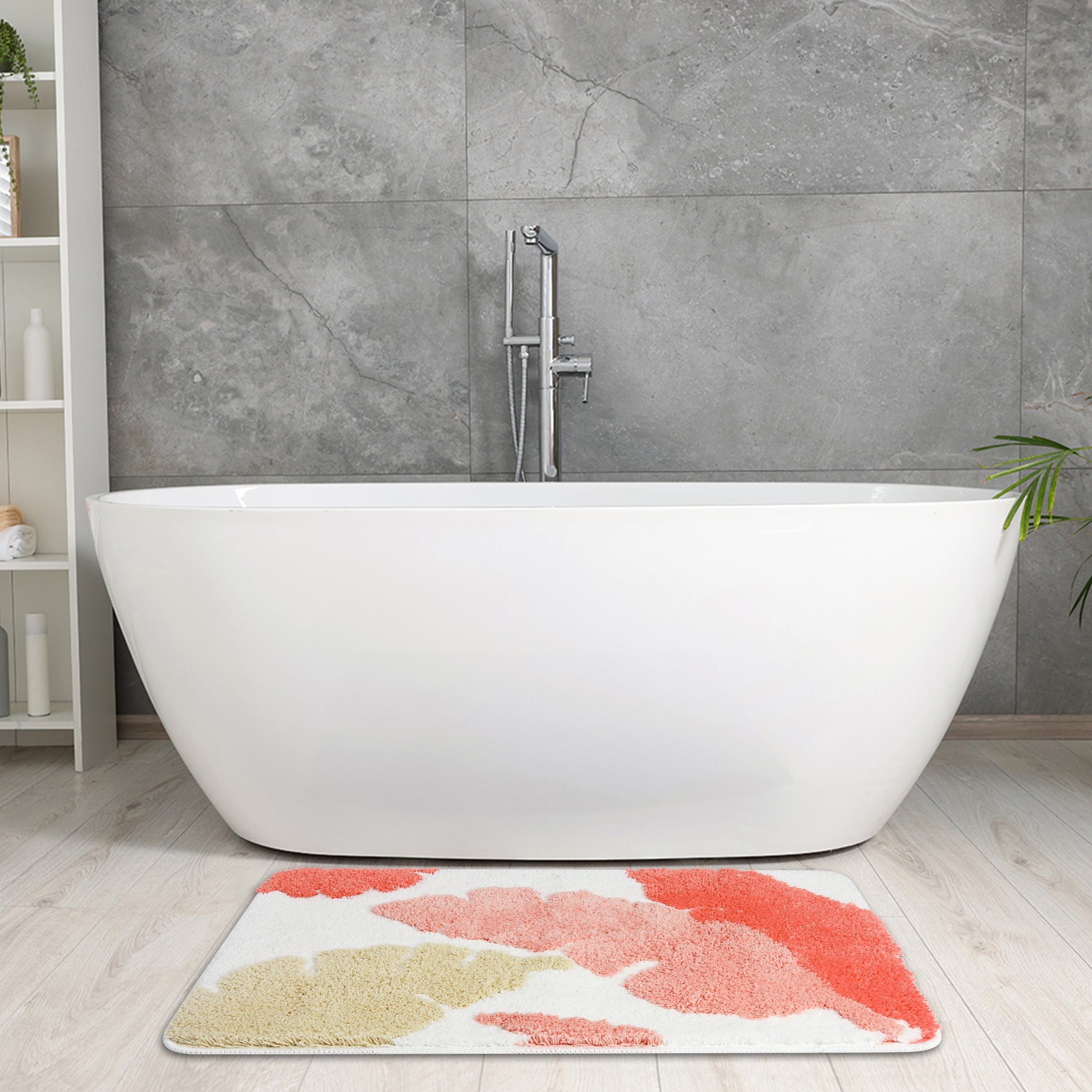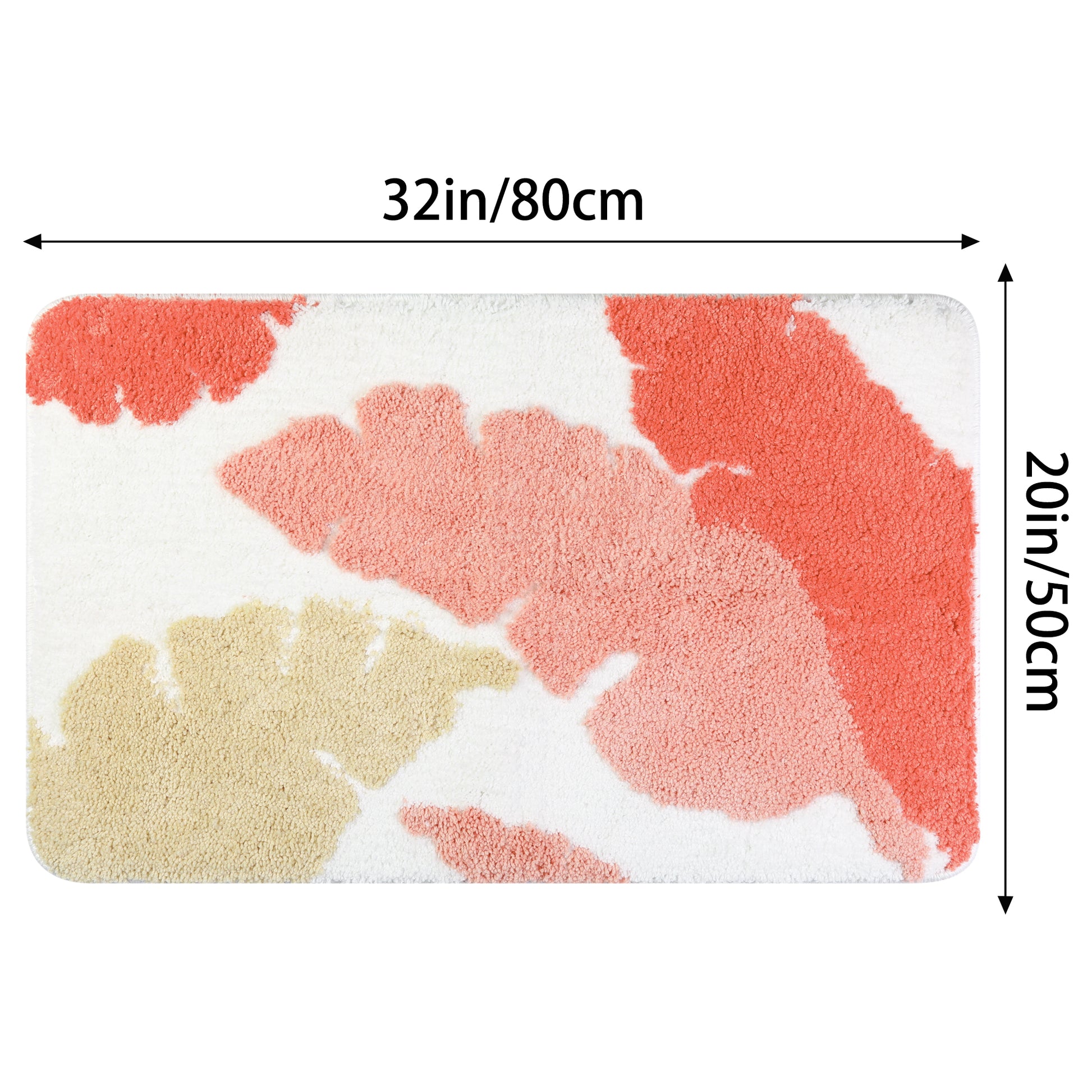 Cute Leaf Pattern Bath Rug, Boho Non Slip Bathroom Decor Washable Mat for Bedroom, Bath Tub