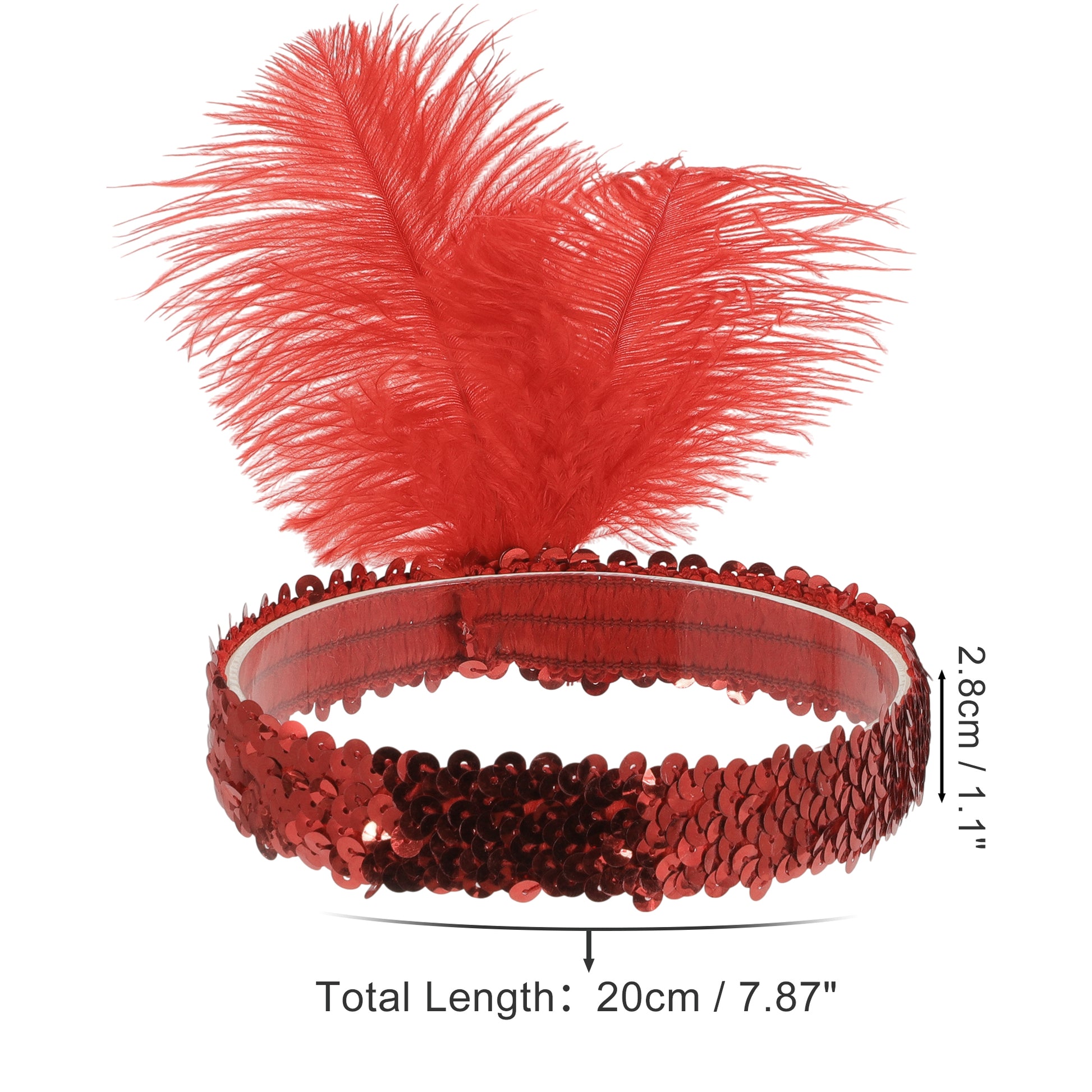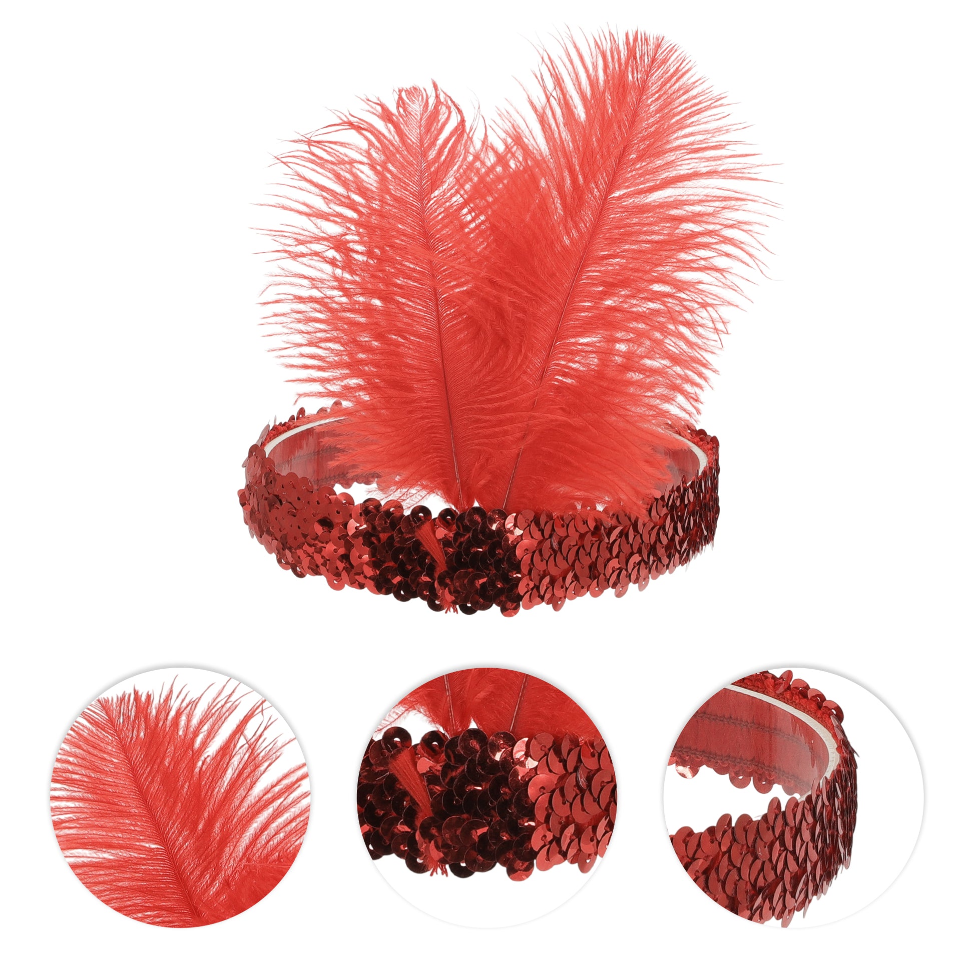 Feathers Sequins Headbands for Women Red 1 Pc