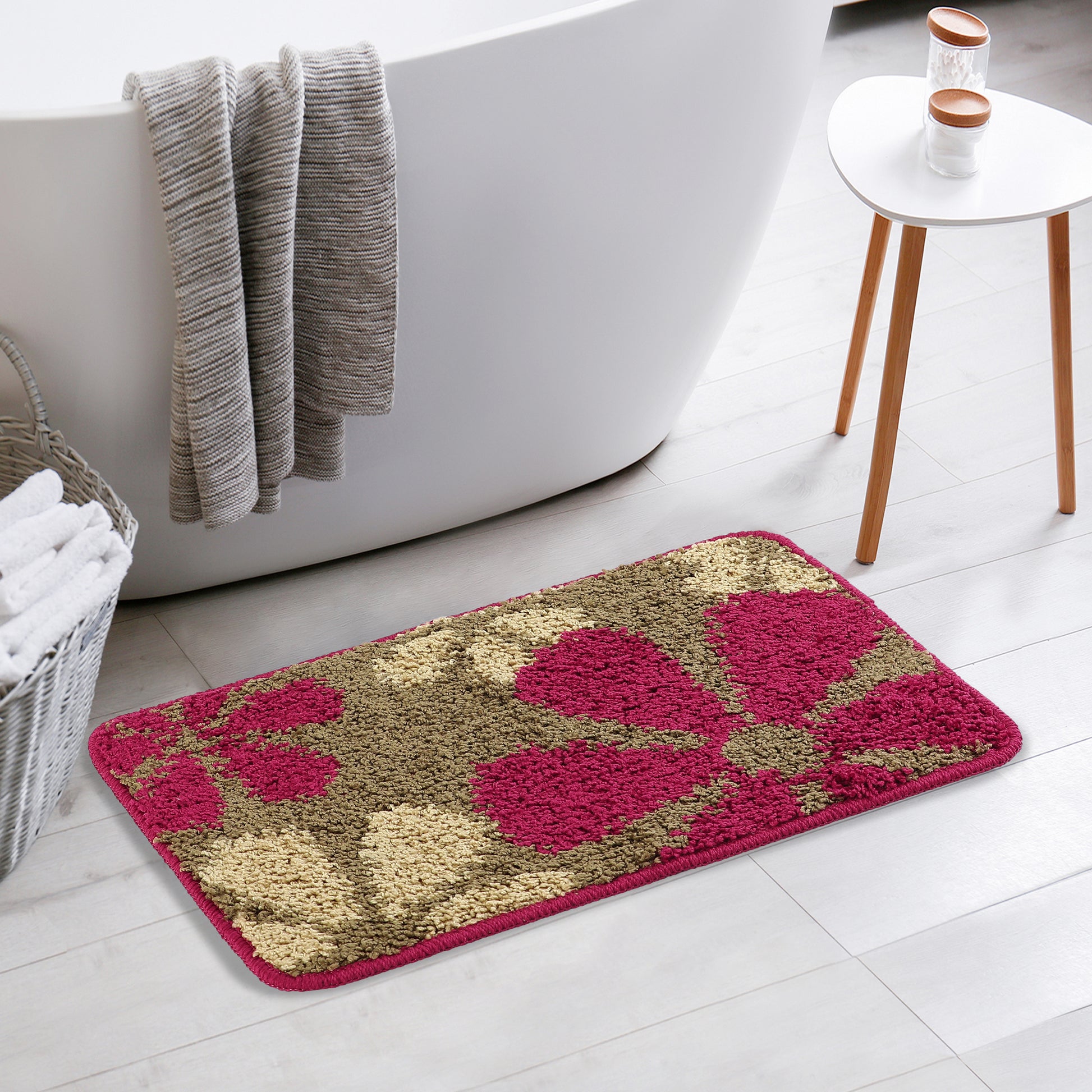 Floral Bath Mat, Plush Shaggy Bathroom Rug, Checked Washable Bath Carpet