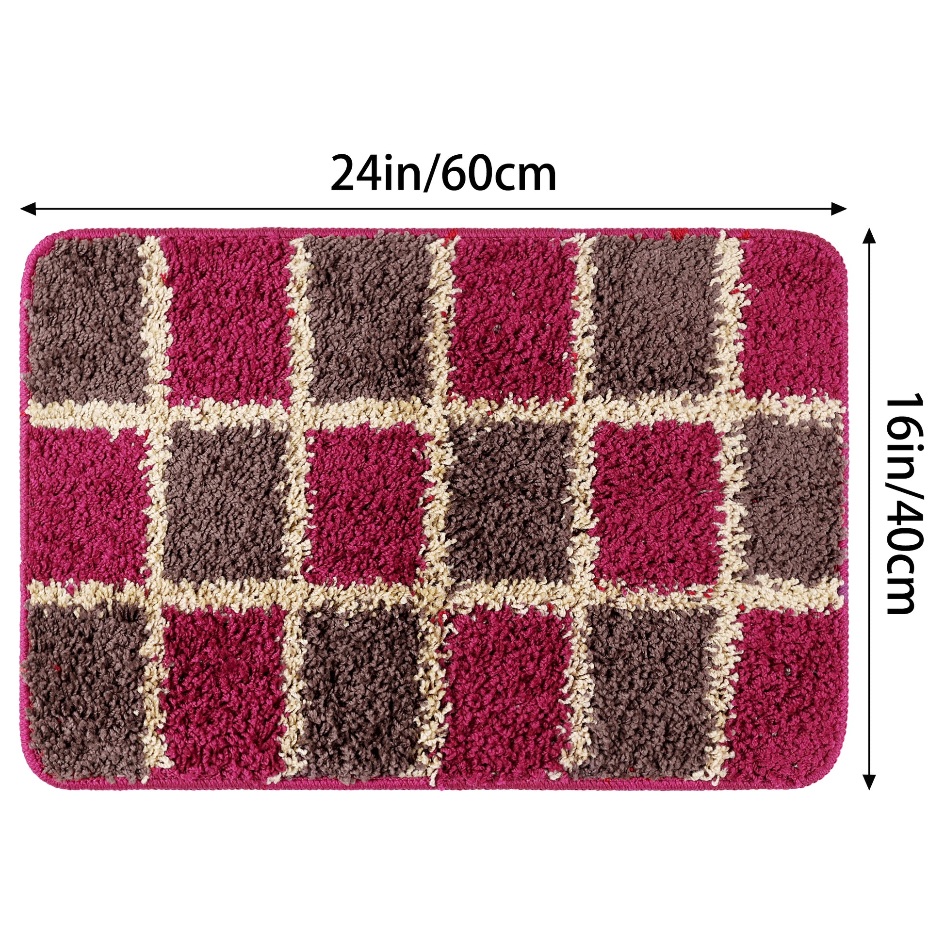 Floral Bath Mat, Plush Shaggy Bathroom Rug, Checked Washable Bath Carpet