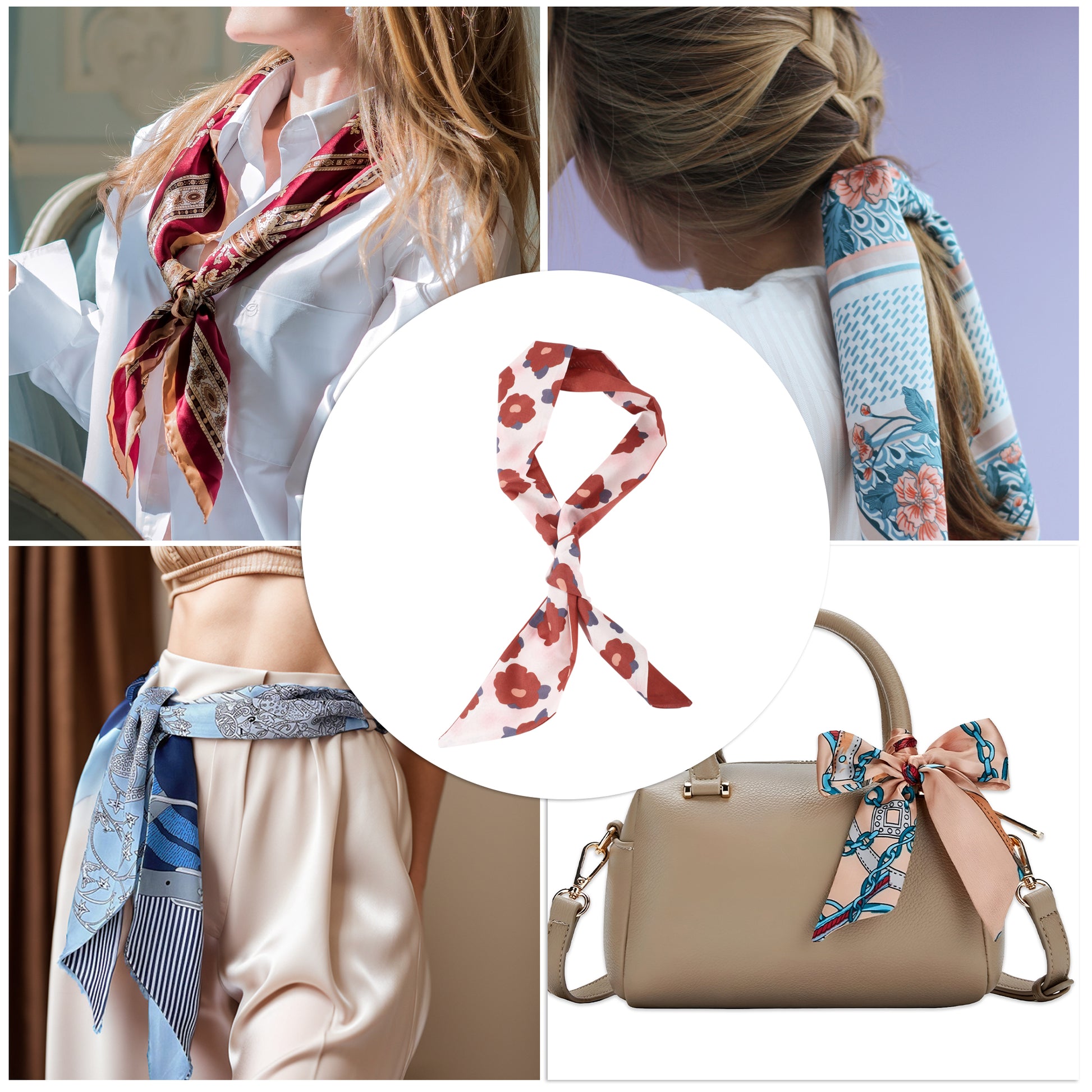 Flower Print Satin Self-tie Headband for Women Beige Red 1 Pc