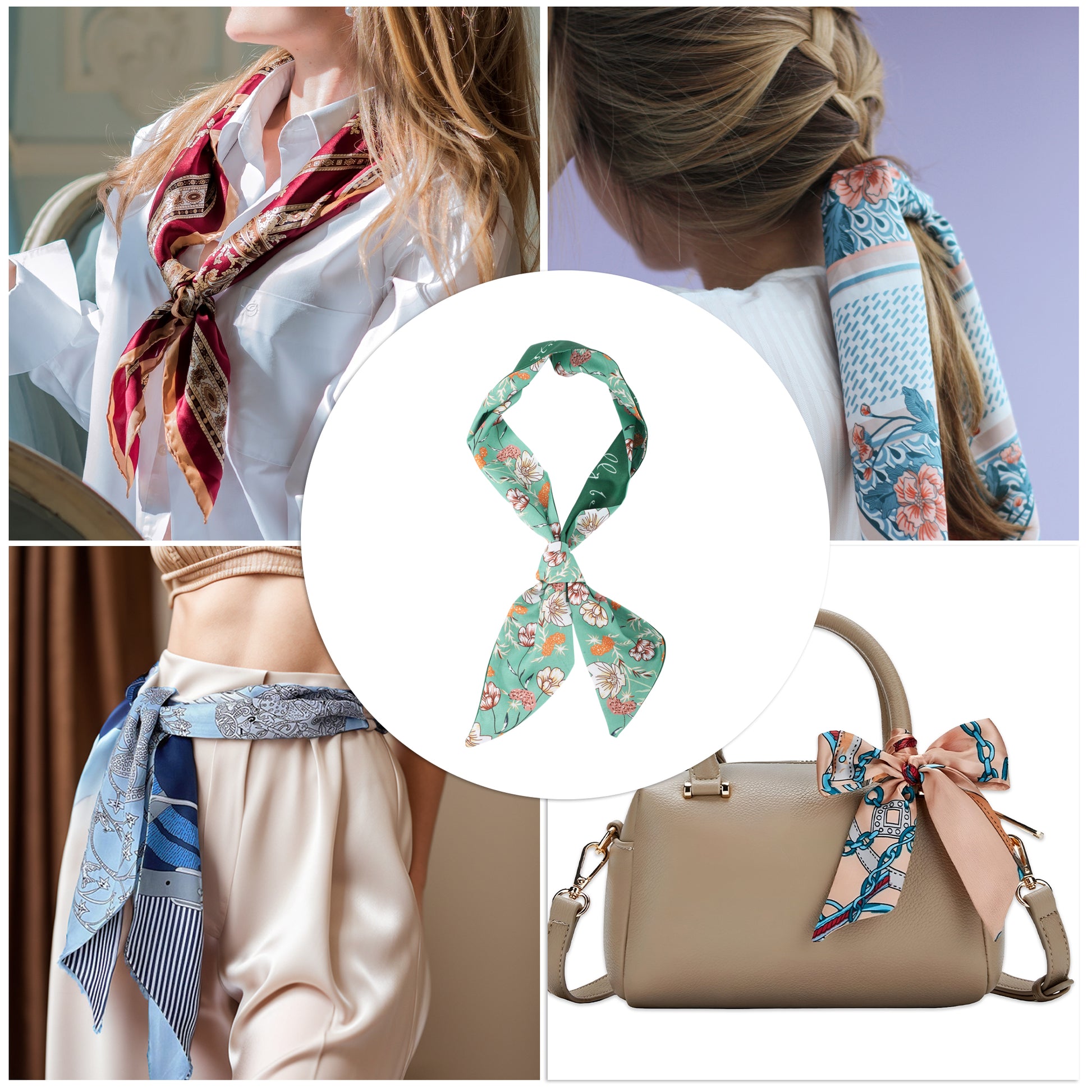 Flower Print Satin Self-tie Headband for Women Green 1 Pc