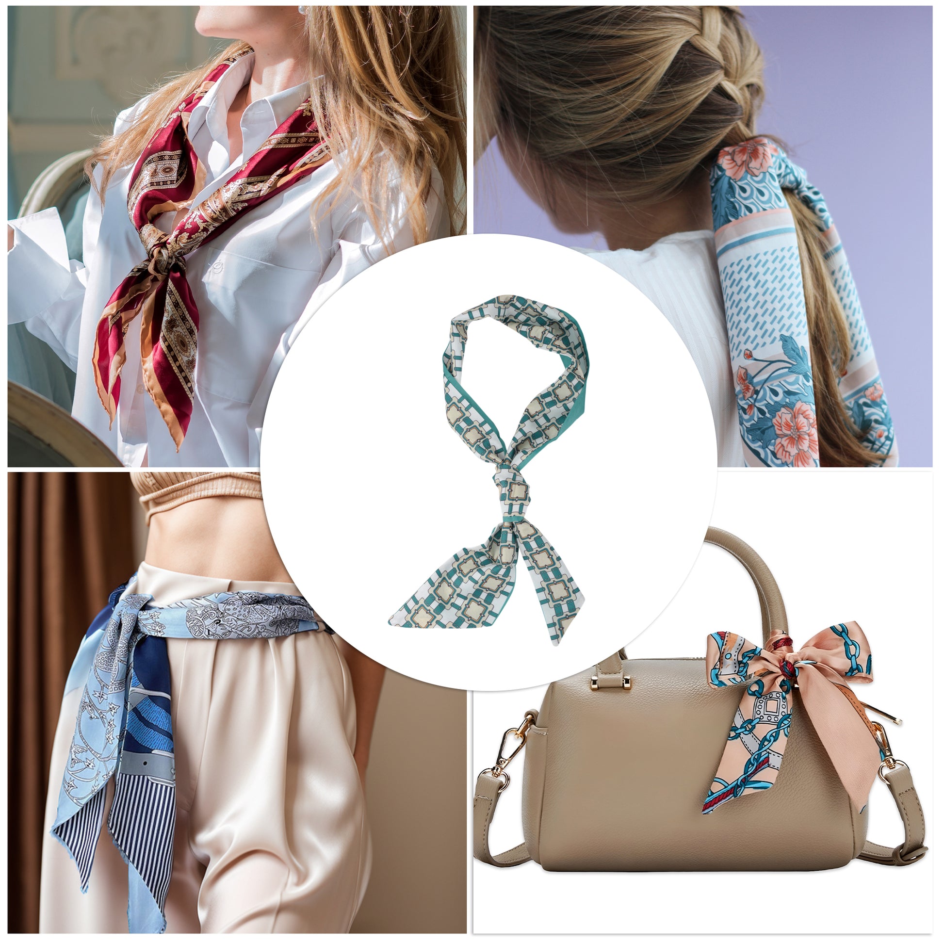 Flower Print Satin Self-tie Headband for Women White Green 1 Pc