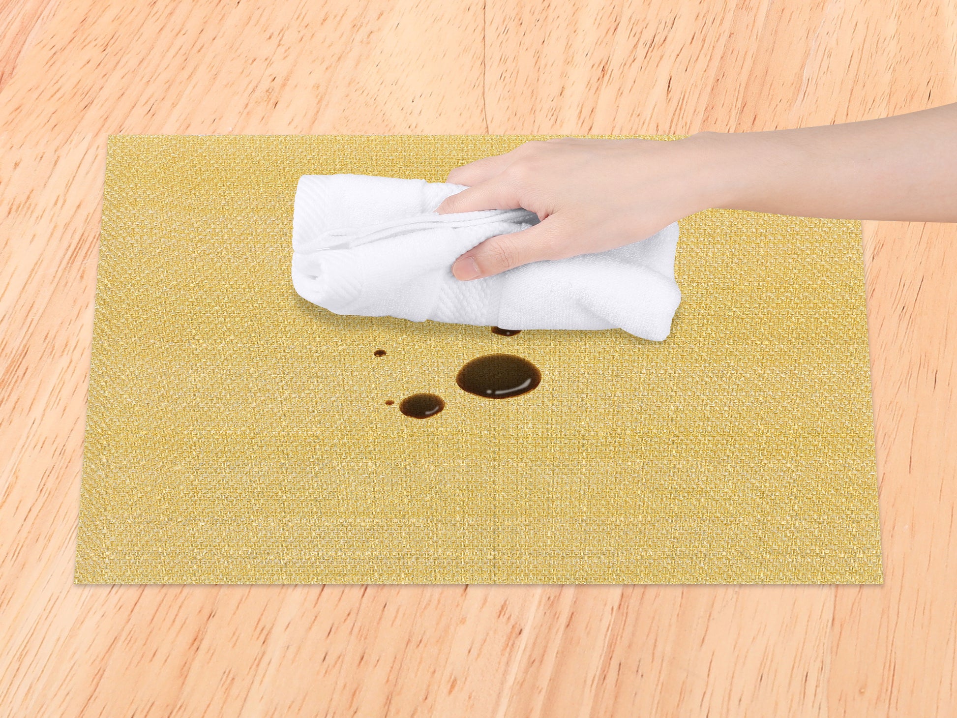 - These washable placemats can be used by just wiping them off with a wet cloth or towel when debris is present, elevating your dining experience
