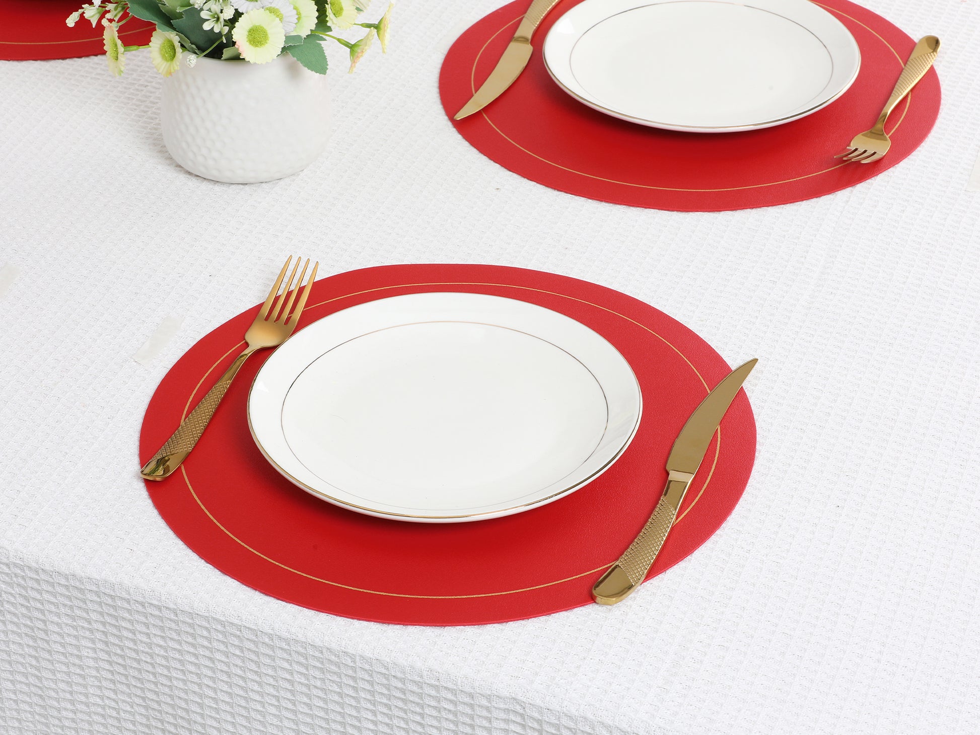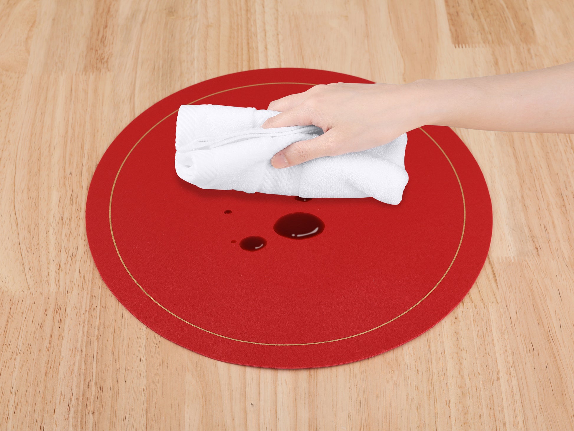 - The round placemats resist fading, and be dining room table decor. These wipetable placemats can be used by just wiping them off with a wet cloth or towel when debris is present, elevating your dining experience