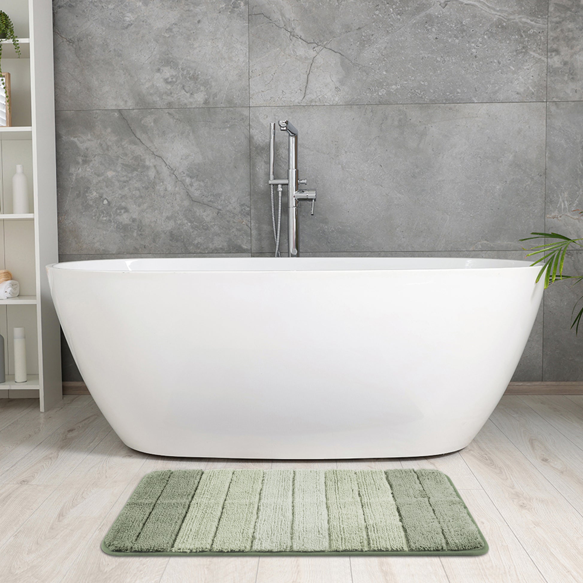 Plush Gradient Striped Bathroom Rug, Microfiber Shaggy Machine Washable Bath Mats