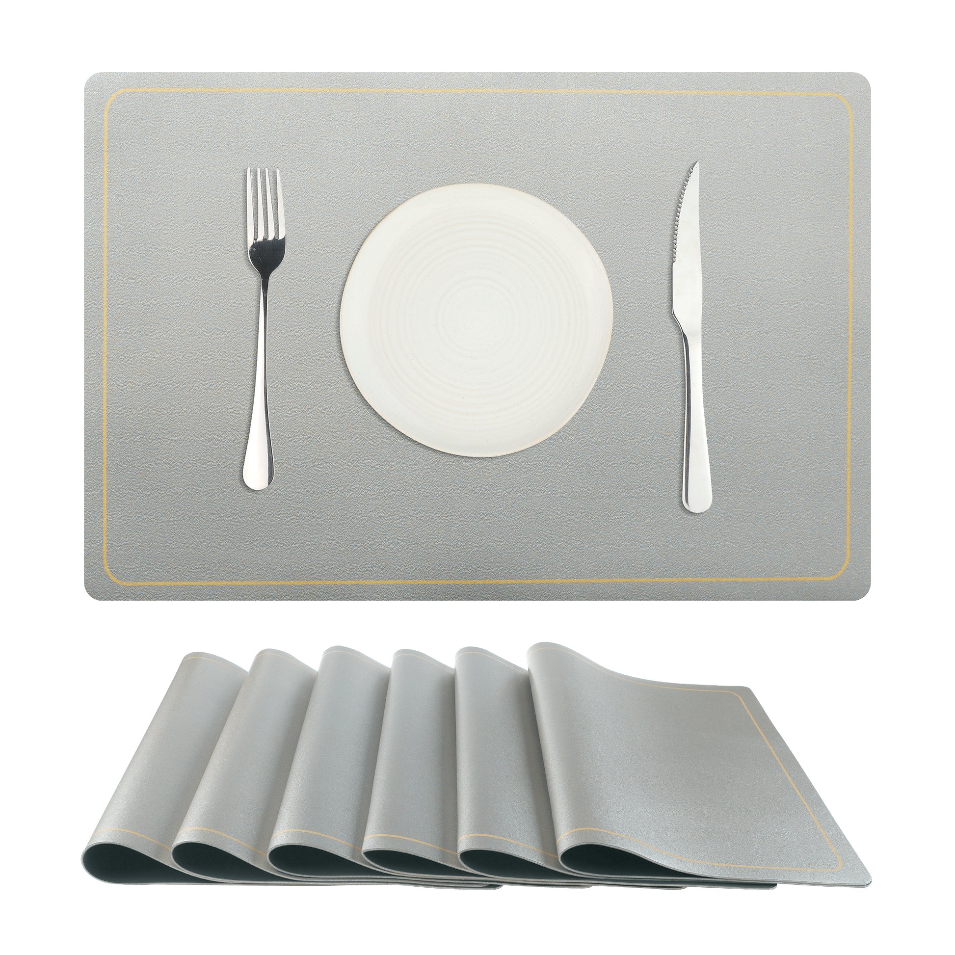 Set of 6 Faux Leather Placemats for Kitchen Dining Table Decor, Washable Wipeable 18*12in