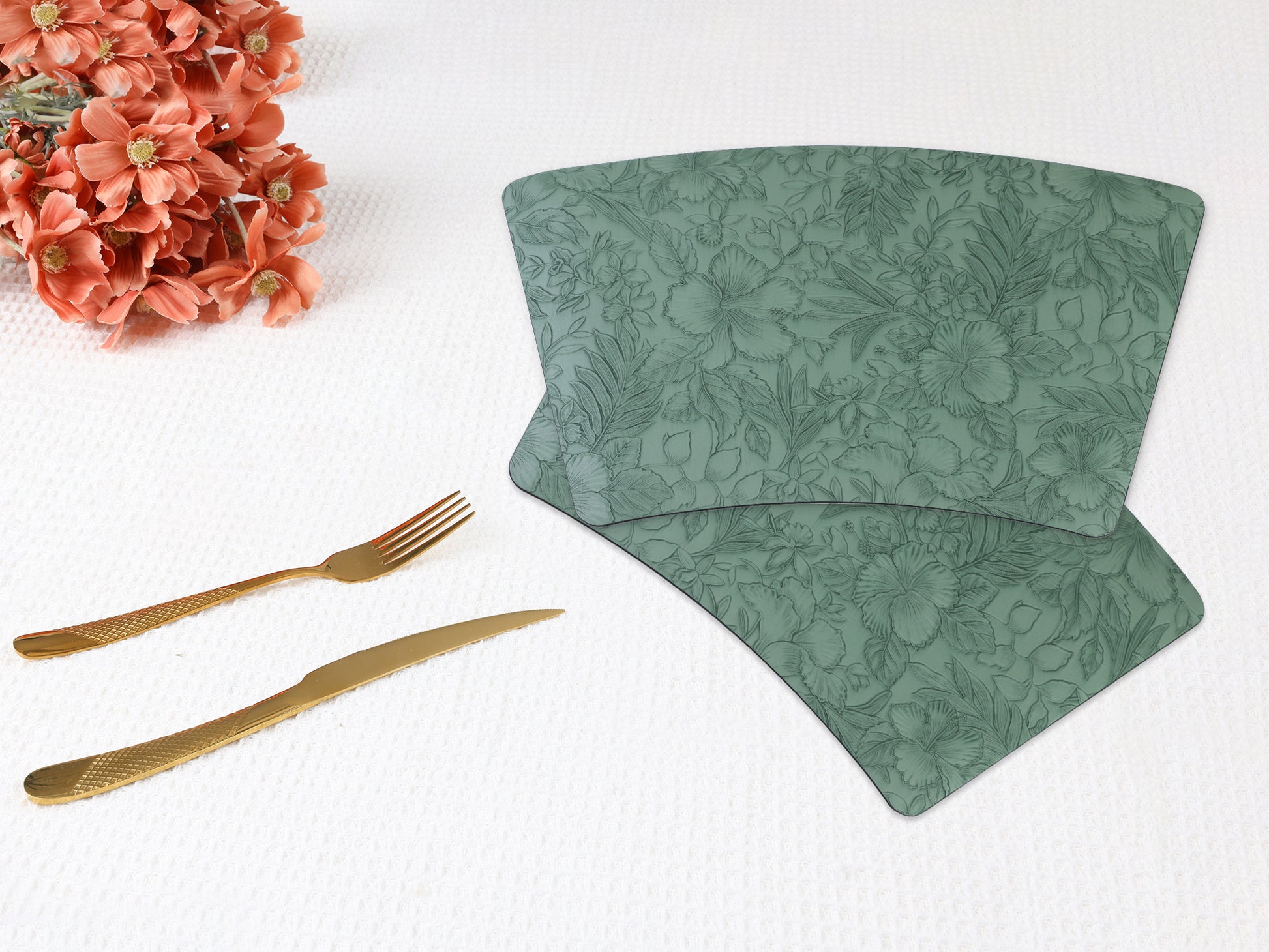 Set of 6 Placemats, Faux Leather Flowers for Kitchen Dining Table Decor 19*12in