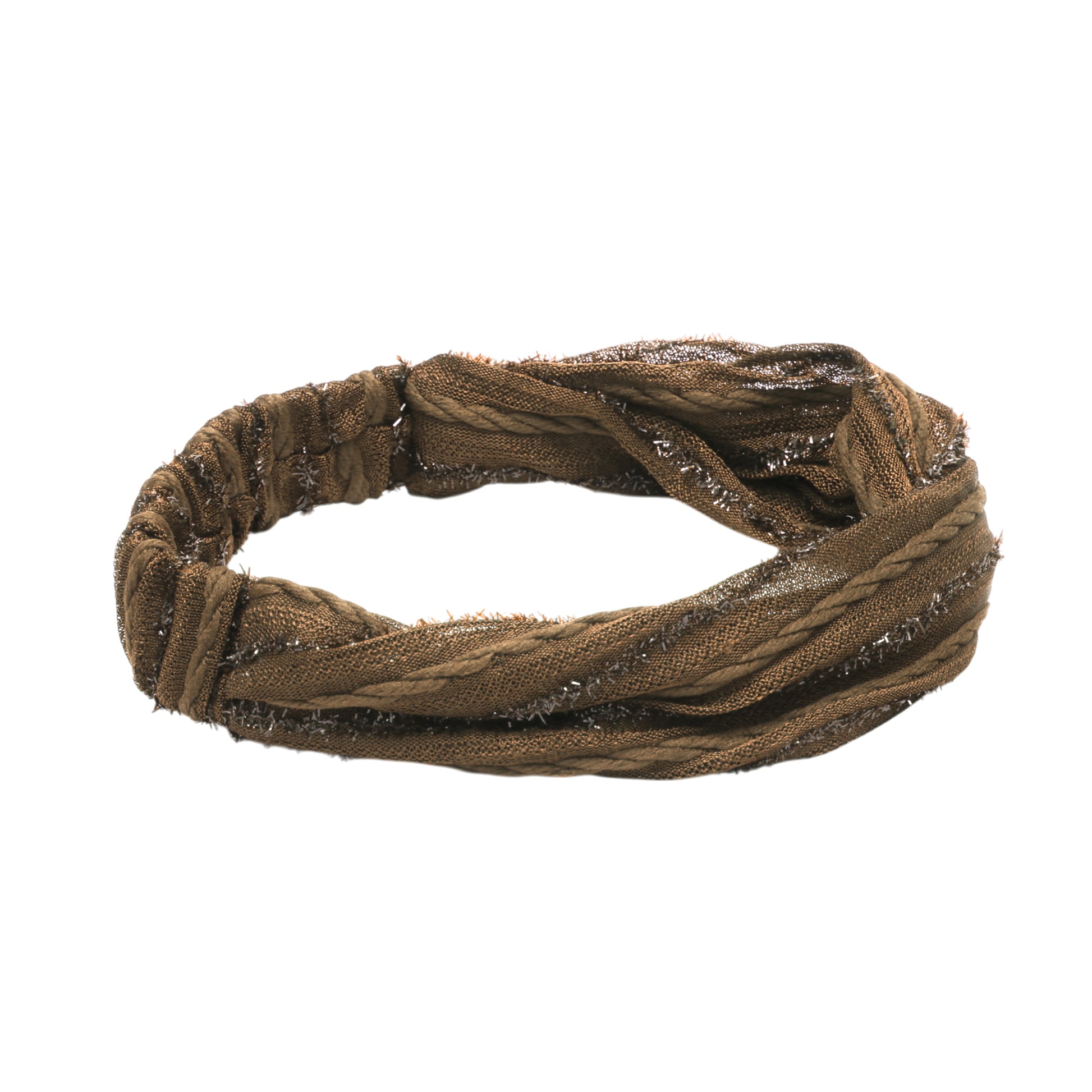 Stripes Vintage Wide Headband for Women Khaki Brown 1 Pc
