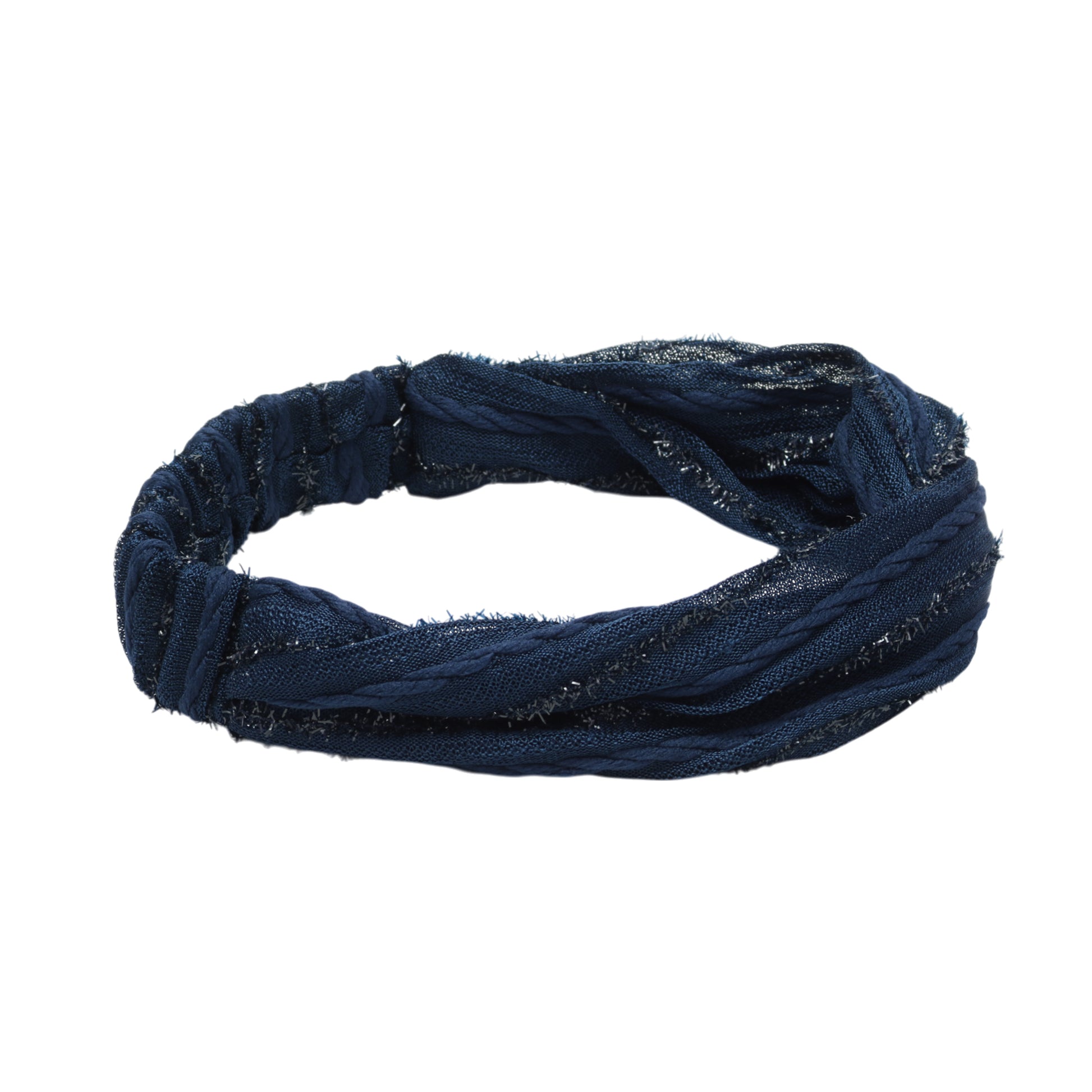 Stripes Vintage Wide Headband for Women Navy Blue 1 Pc