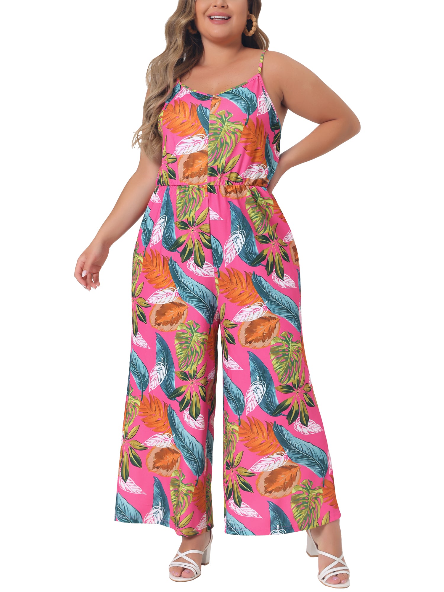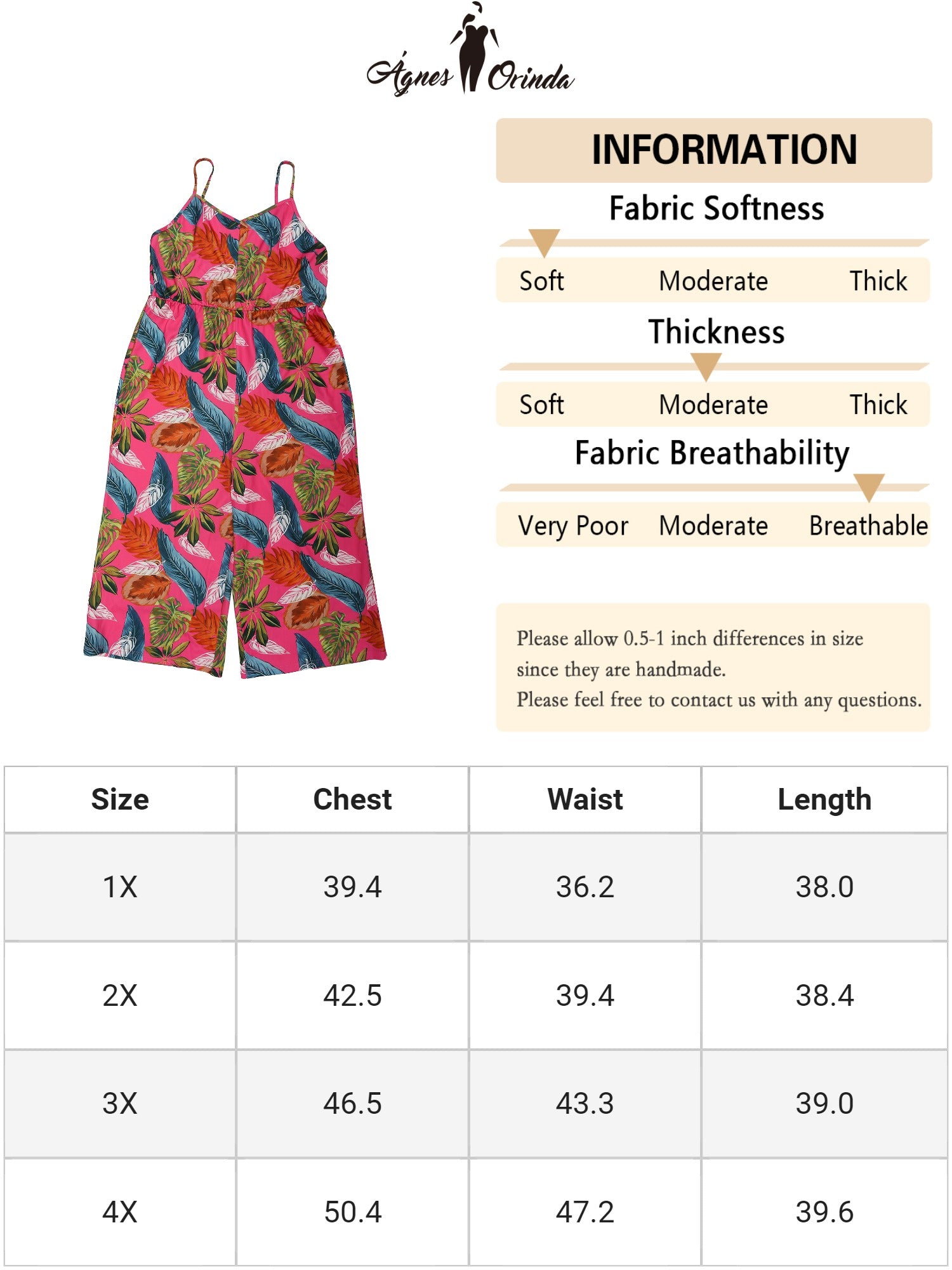 Women Plus Size Jumpsuits Sleeveless Adjustable Spaghetti Strap Stretchy Long Pant Romper Jumpsuit