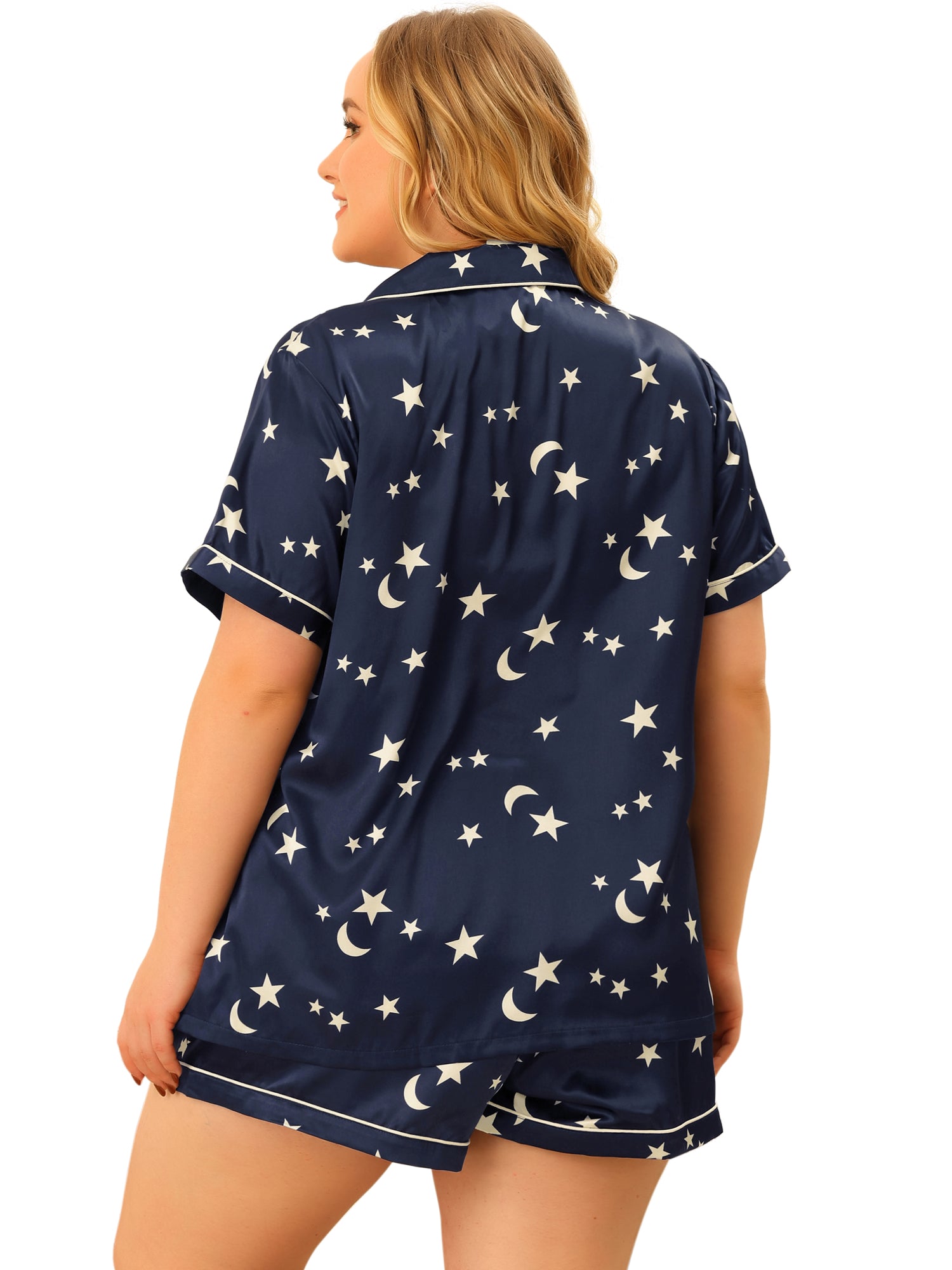 Women Plus Size Pajama Set Short Sleeve Button Shirt and Shorts 2 Pcs Loungewear