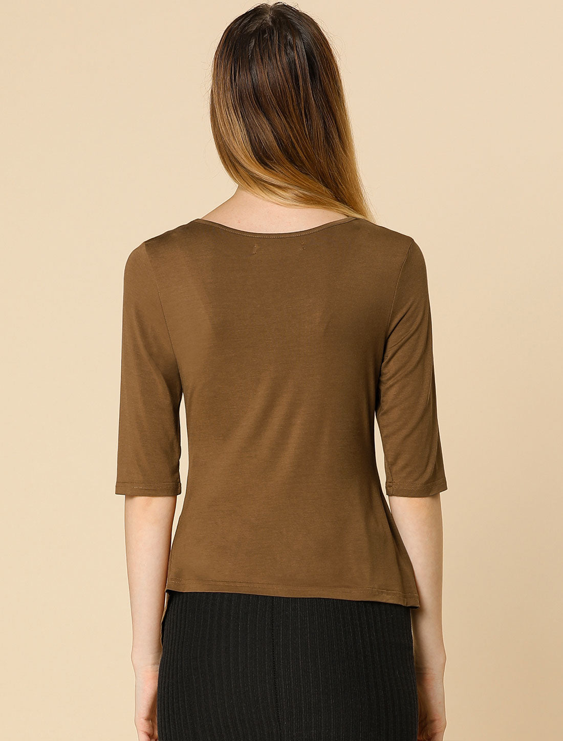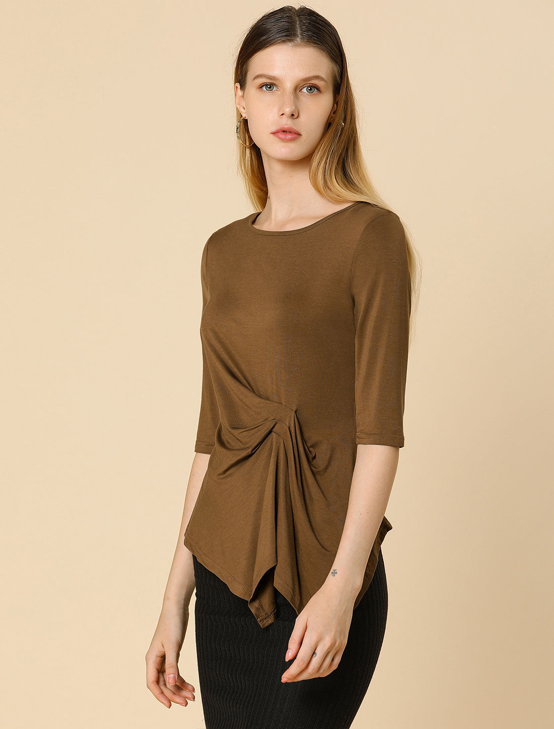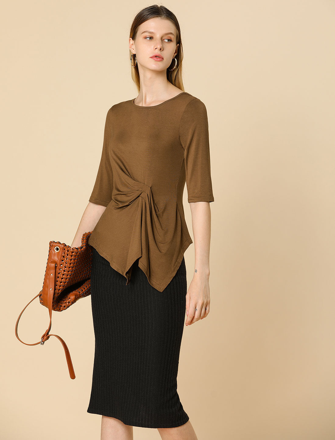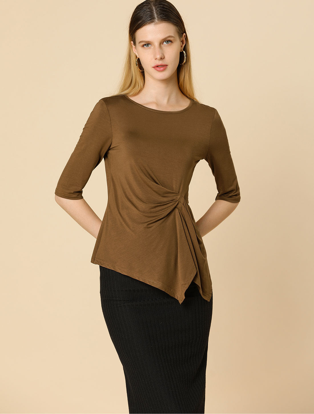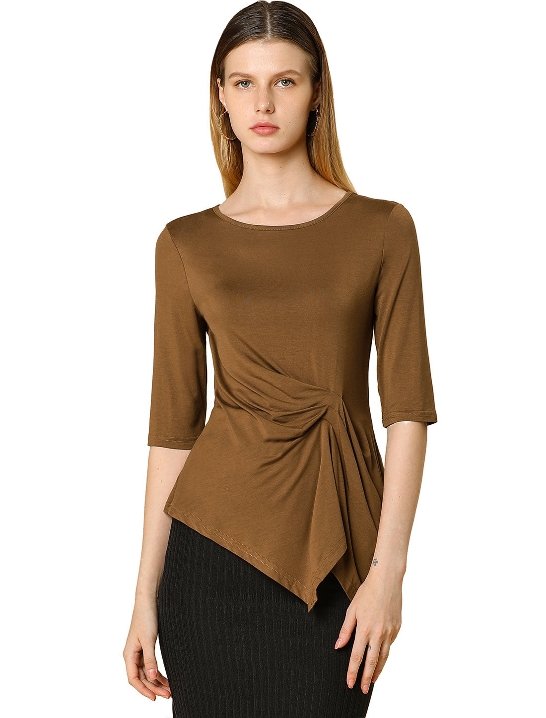 Women's Asymmetrical Round Neck Half Sleeve Fitted Ruched Top
