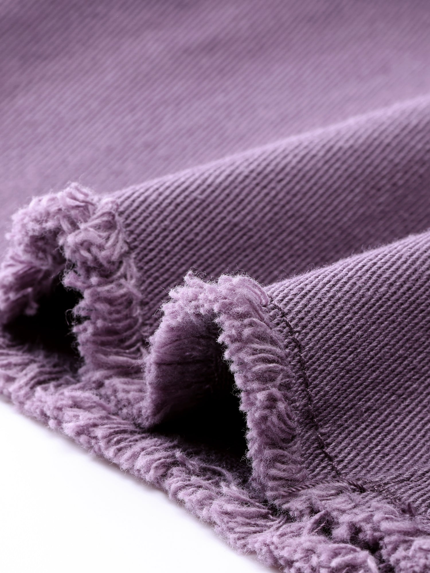 Women's Basic Distressed High Waist Ripped Hem Washed Jeans Denim Skirt