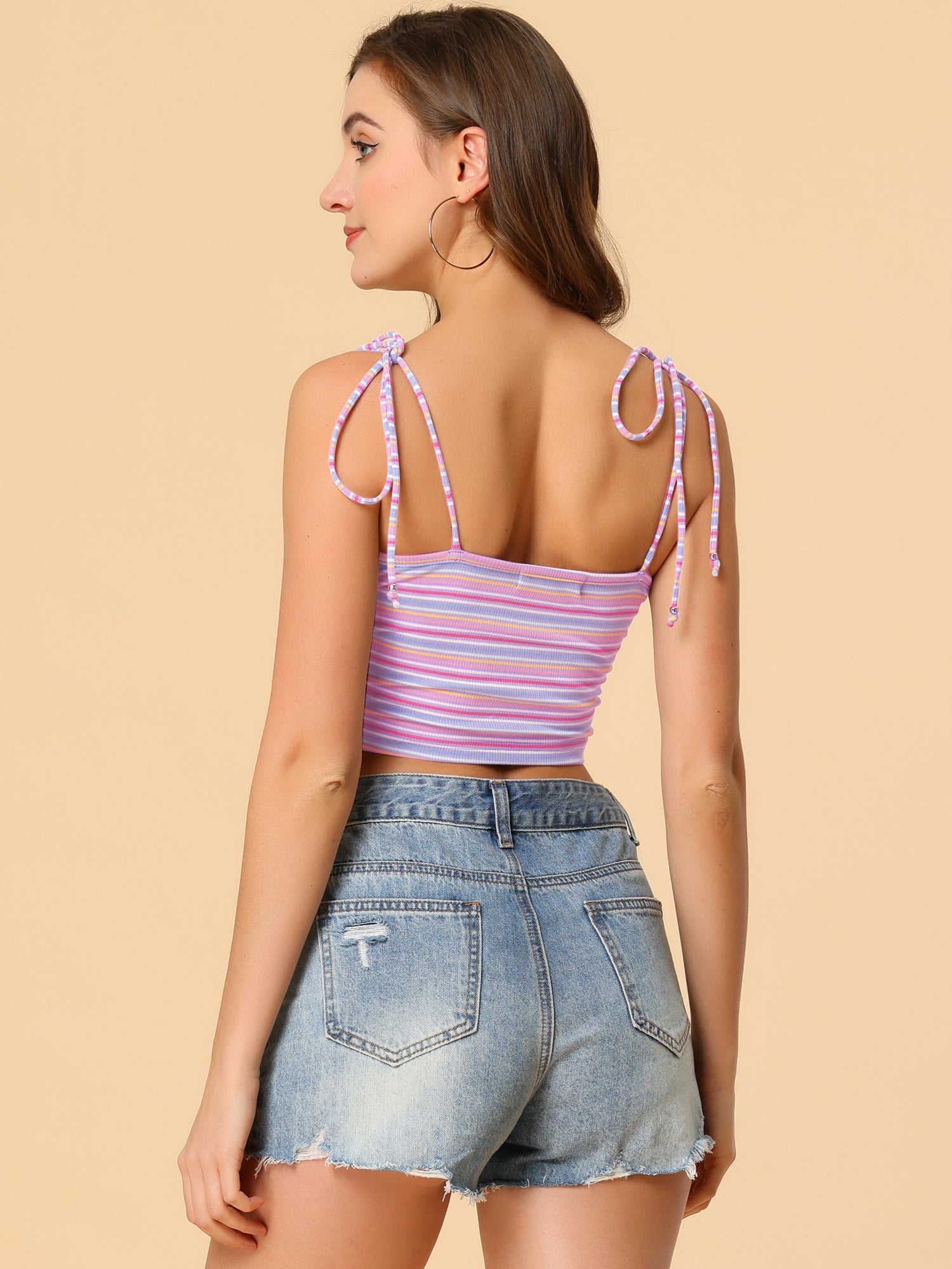Women's Cami Tube Top Tie Spaghetti Straps Sleeveless Summer Crop Top