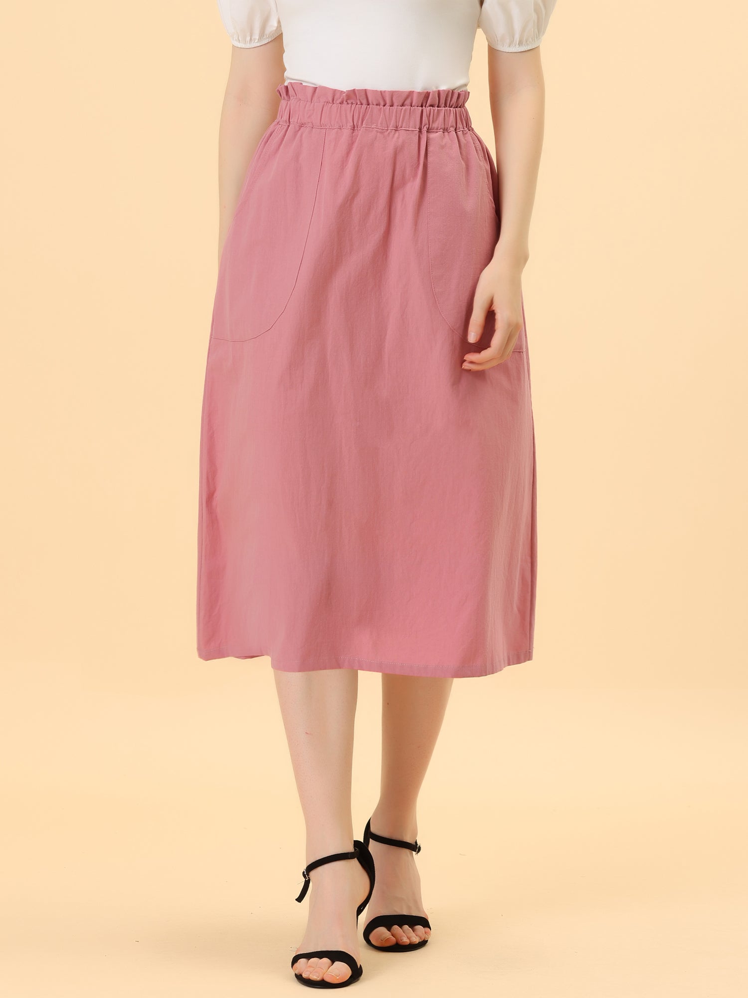 Women's Casual Cotton Skirt Elastic Waist Scrub Peasant A-Line Midi Skirts with Pockets