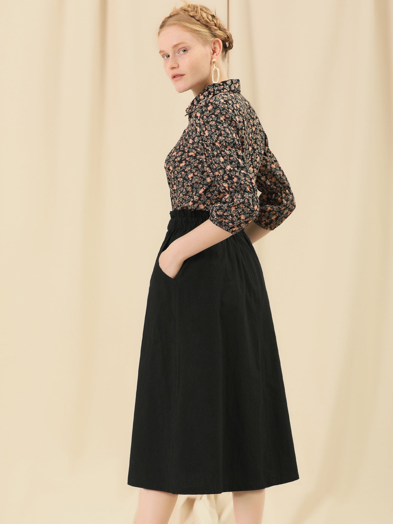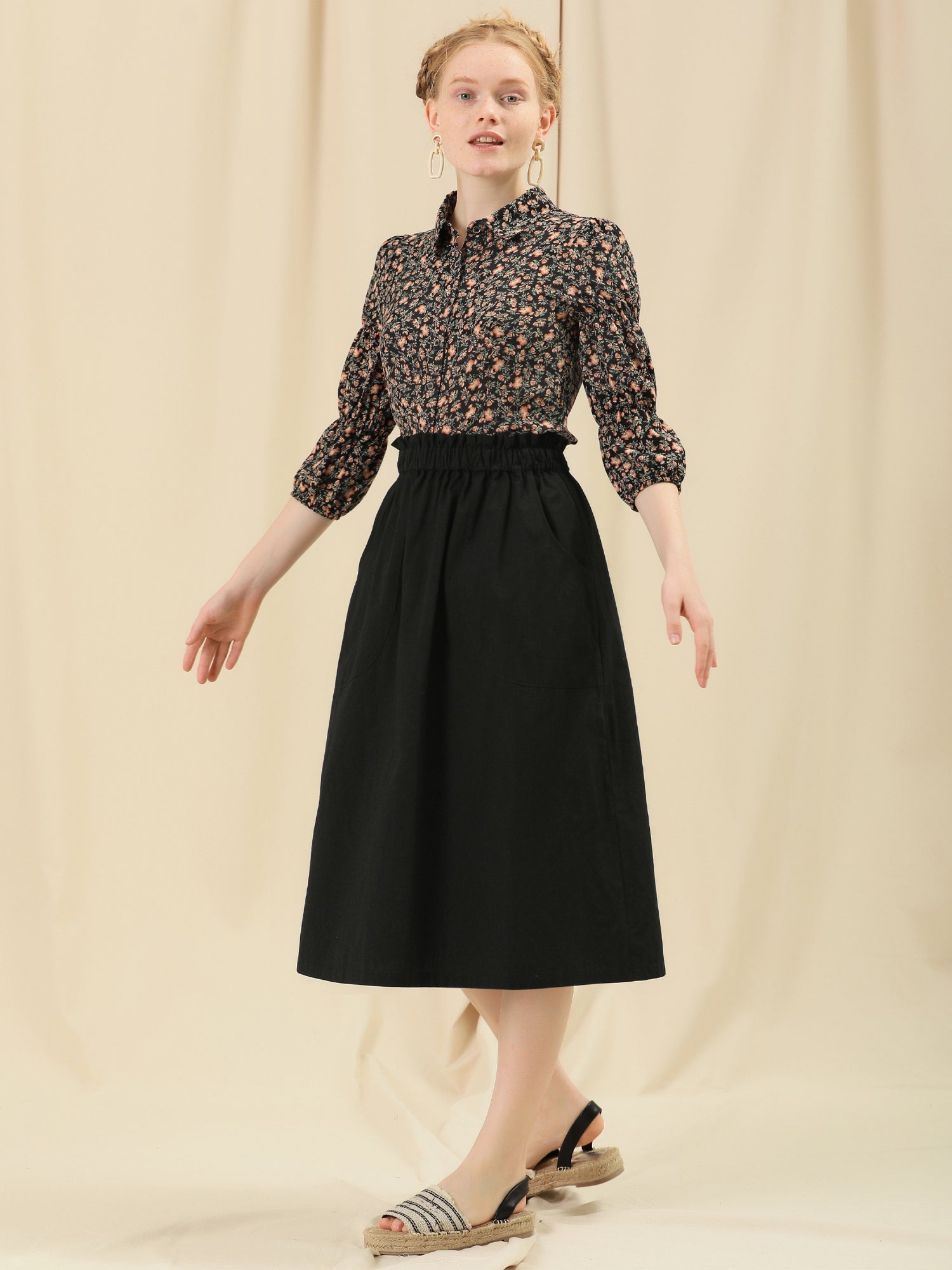 Women's Casual Cotton Skirt Elastic Waist Scrub Peasant A-Line Midi Skirts with Pockets (Available in Plus Size)