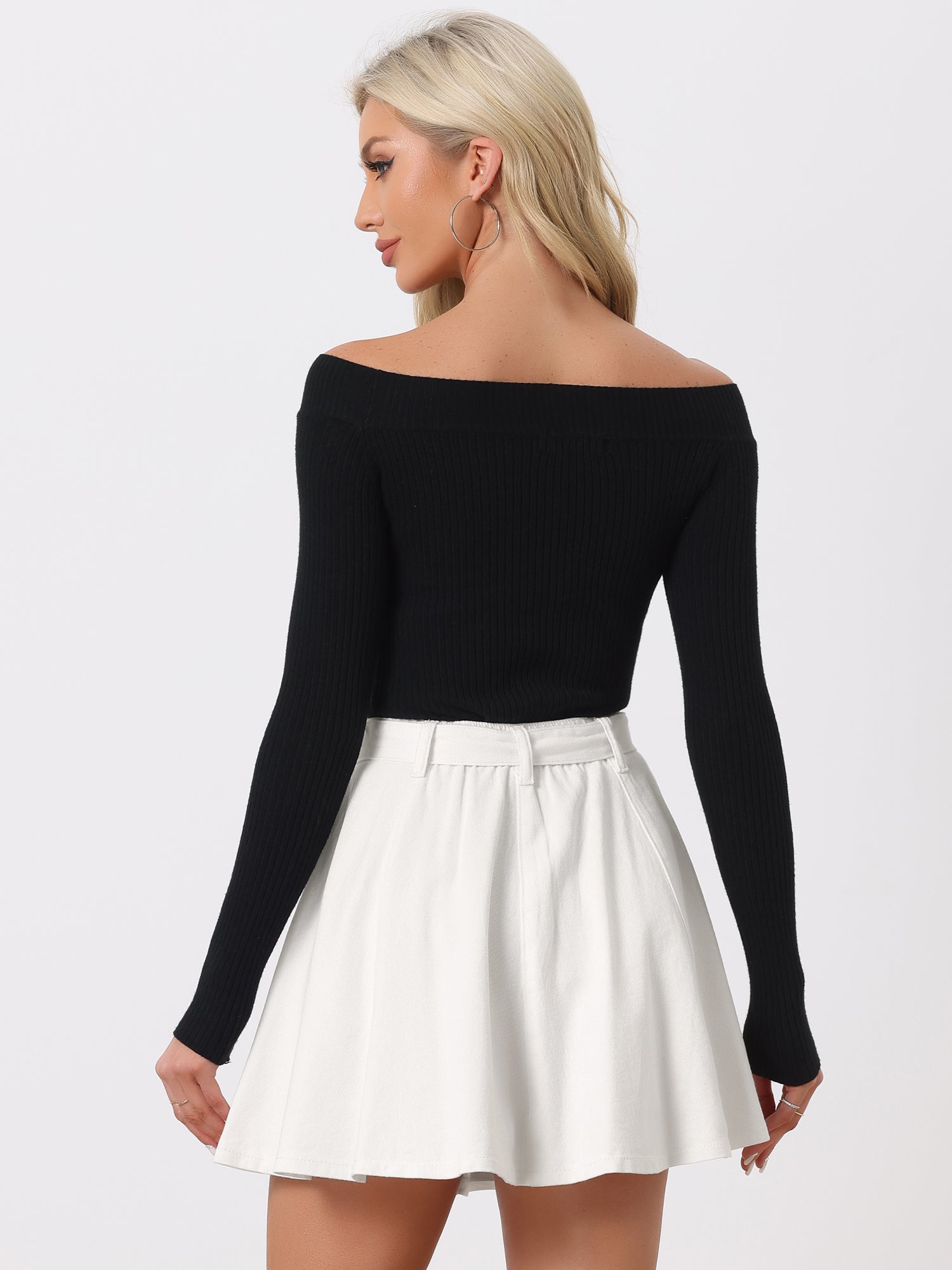 Women's Casual Denim Skirt High Waist A-Line Flared Mini Jean Skirts with Belt