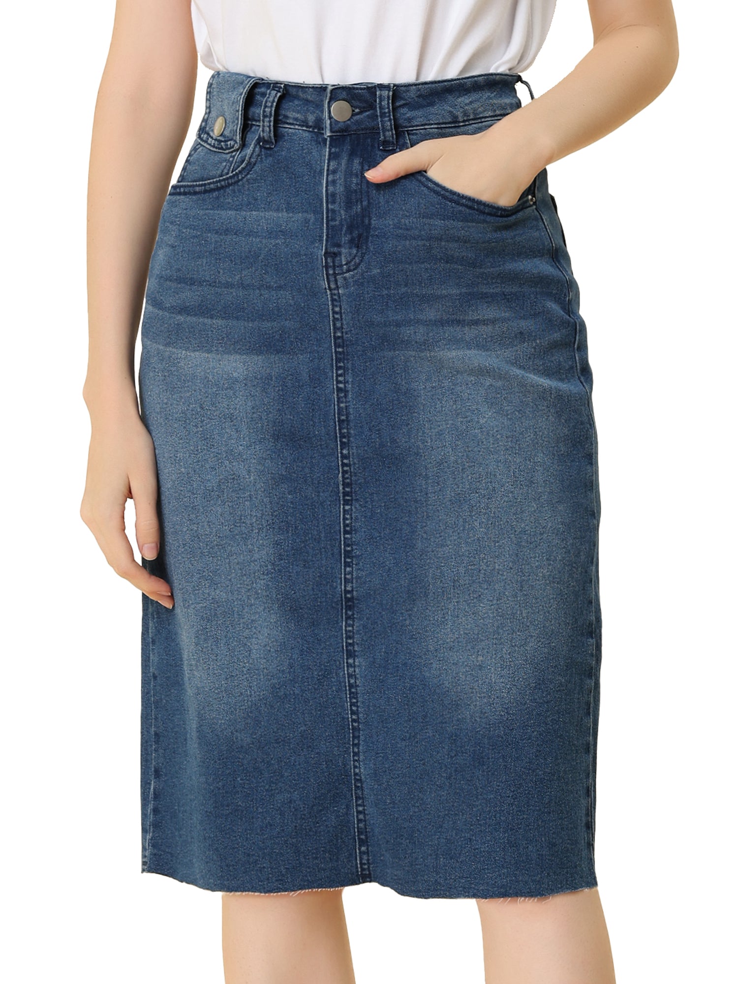 Women's Casual Jean Skirt High Waist Back Slit Stretch Denim Skirt (Available in Plus Size)