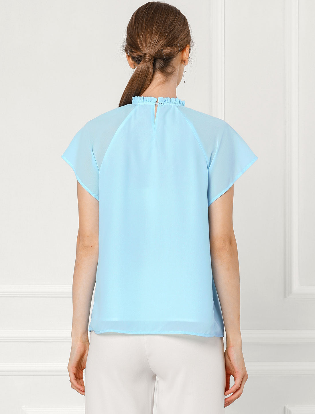 Women's Chiffon Ruffle Collar Short Sleeve Blouse Top