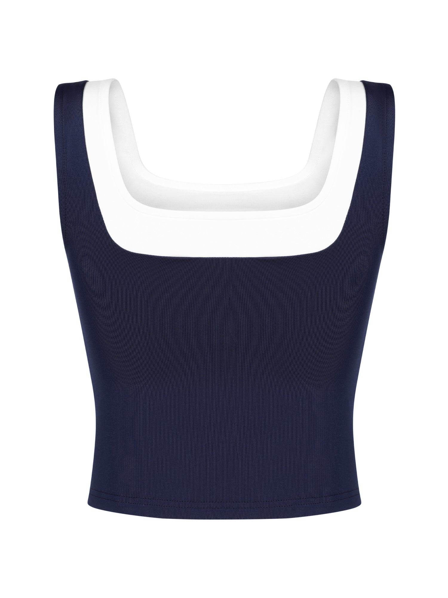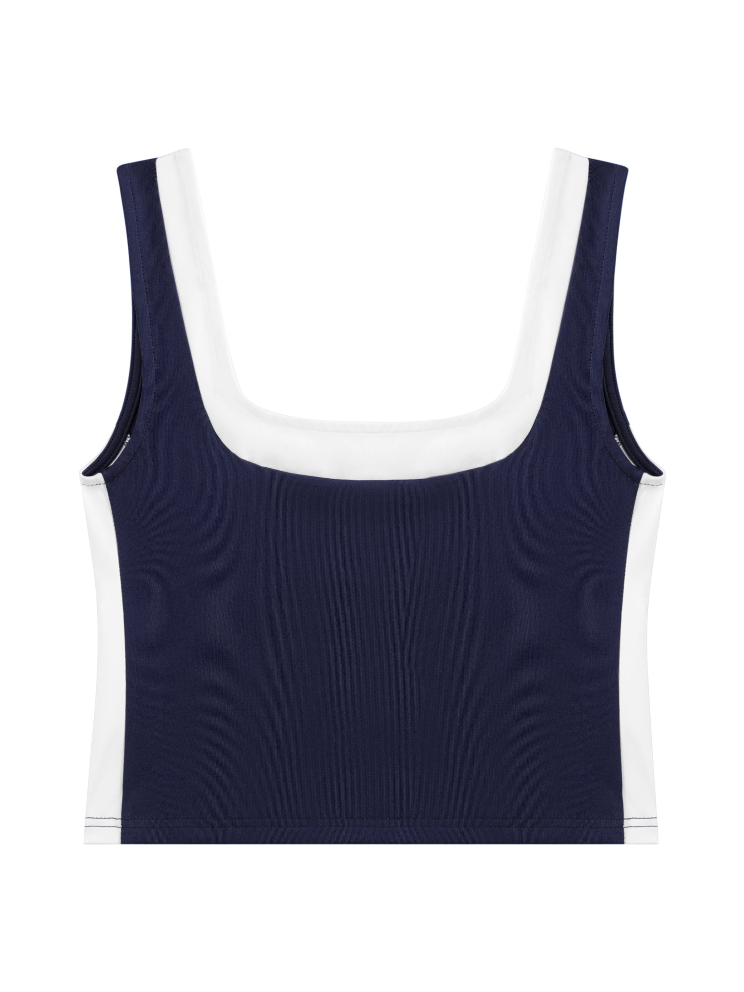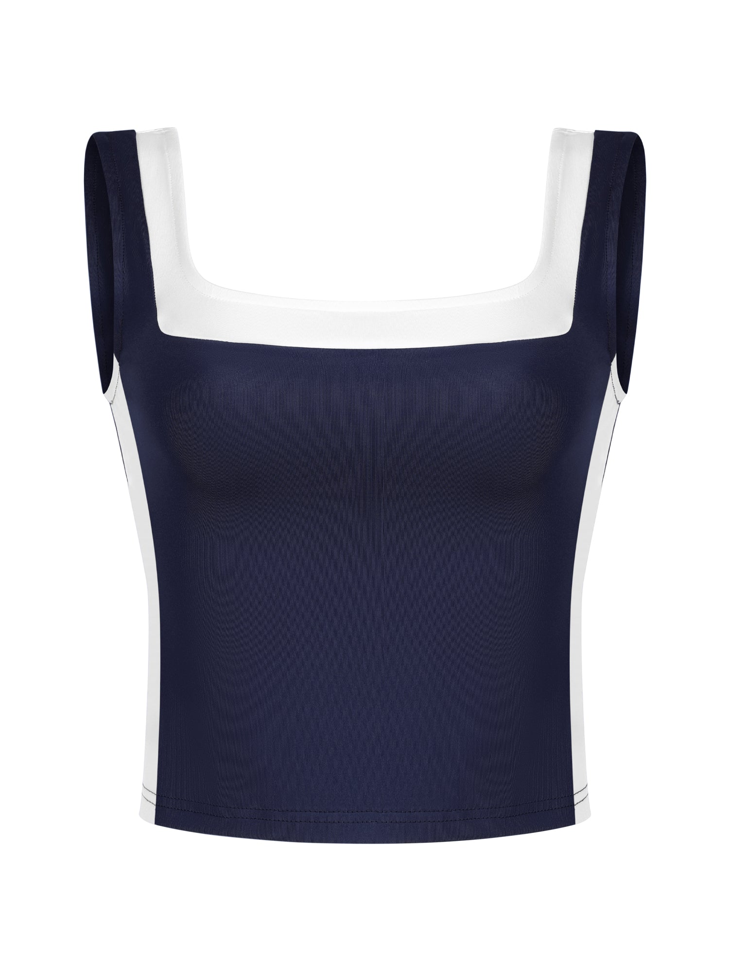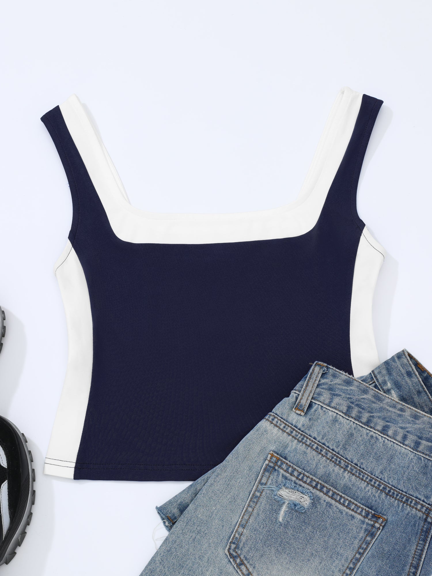 Women's Color Block Square Neck Tank Top Strappy Sleeveless Summer Crop Top
