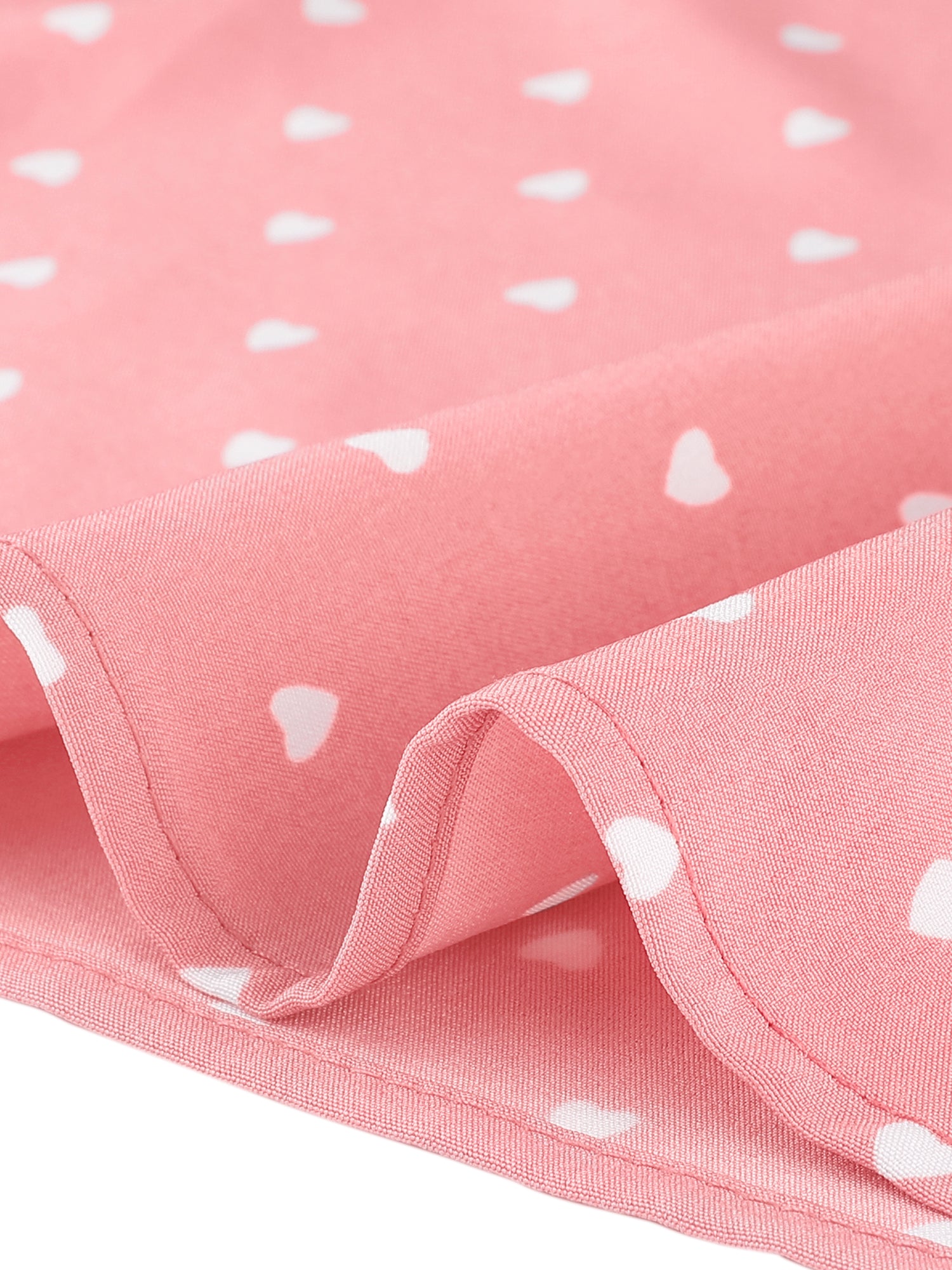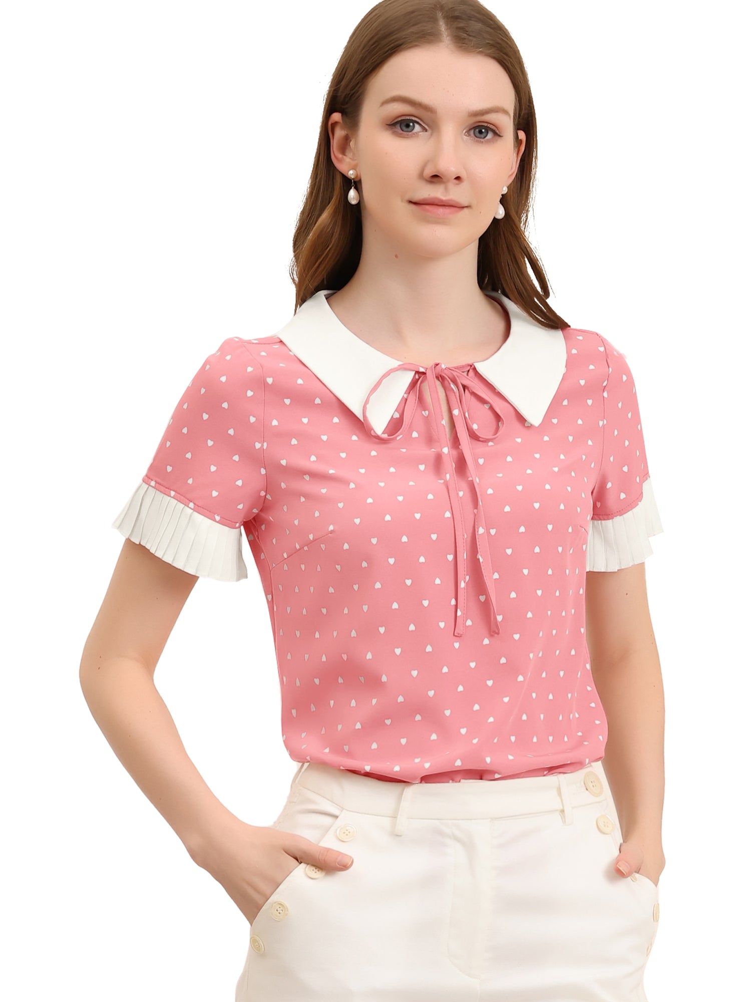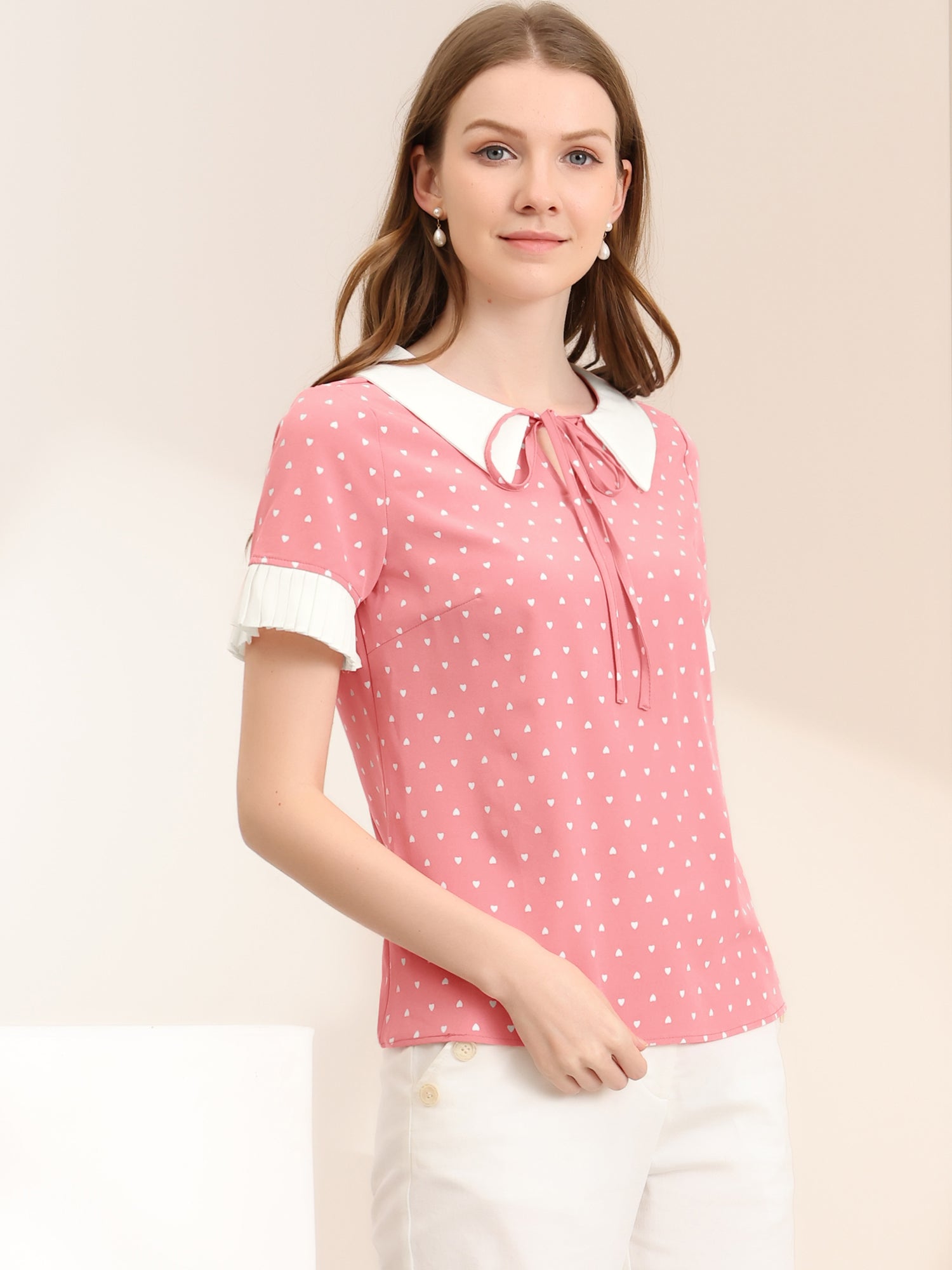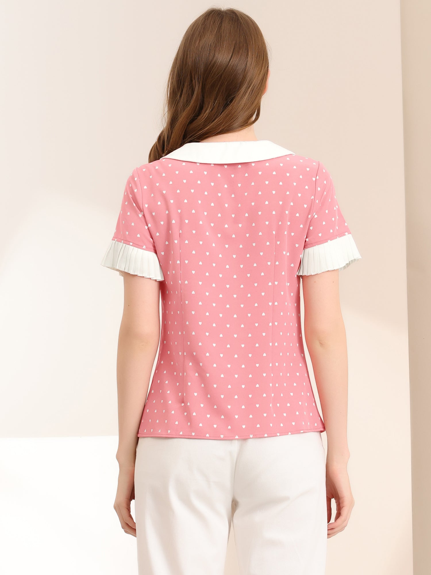 Women's Contrast Doll Collar Polka Dots Short Sleeves Blouse Shirt Top