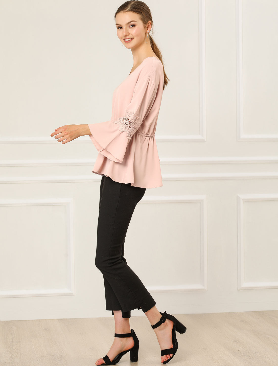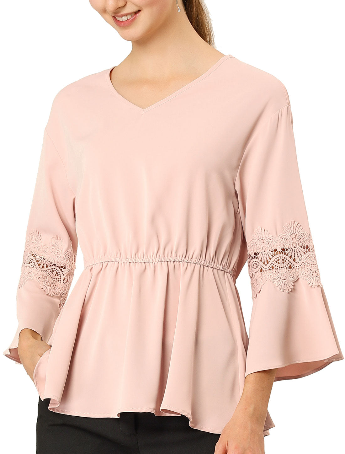 Women's Crochet Lace V Neck Work Office Peplum Blouse Top