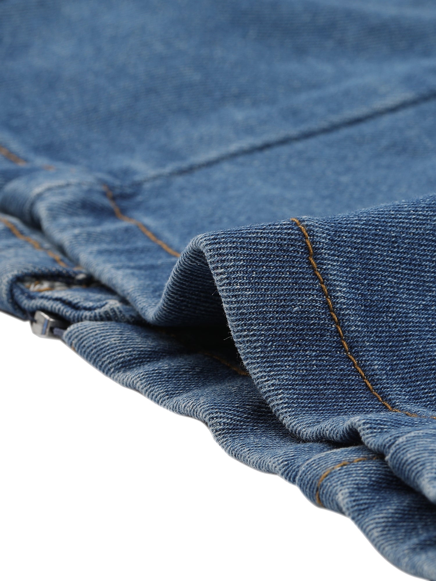 Women's Denim Bustier Crop Top Zip Up Adjustable Straps Jean Corset Top
