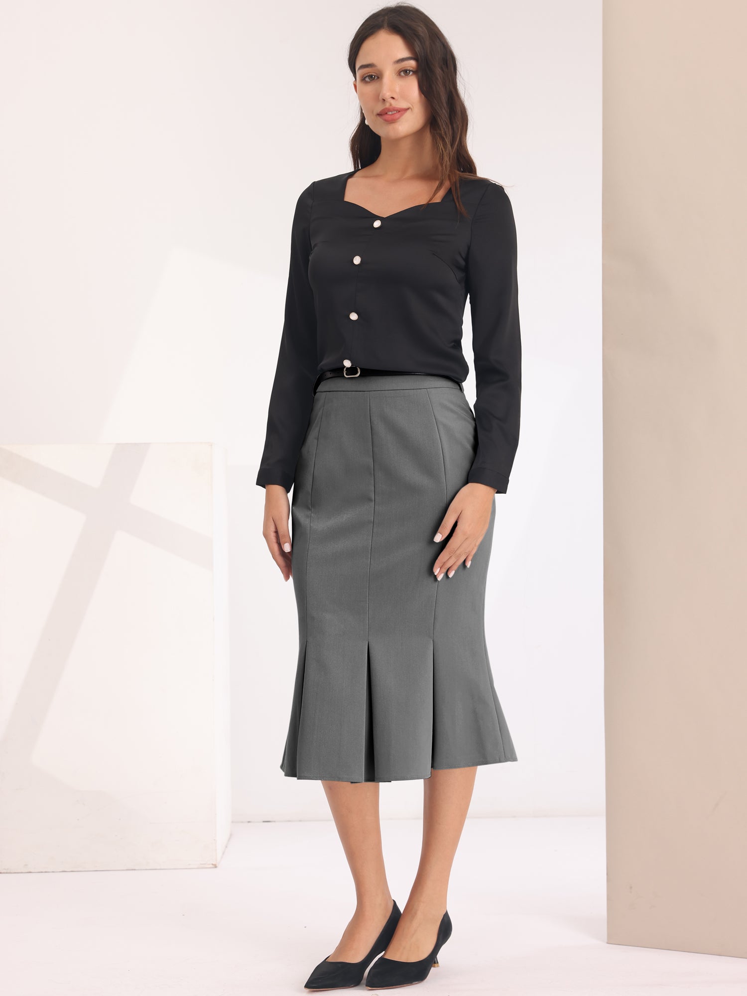 Women's Elegant Formal Skirt with Belt Knee Length Fishtail Pencil Skirt
