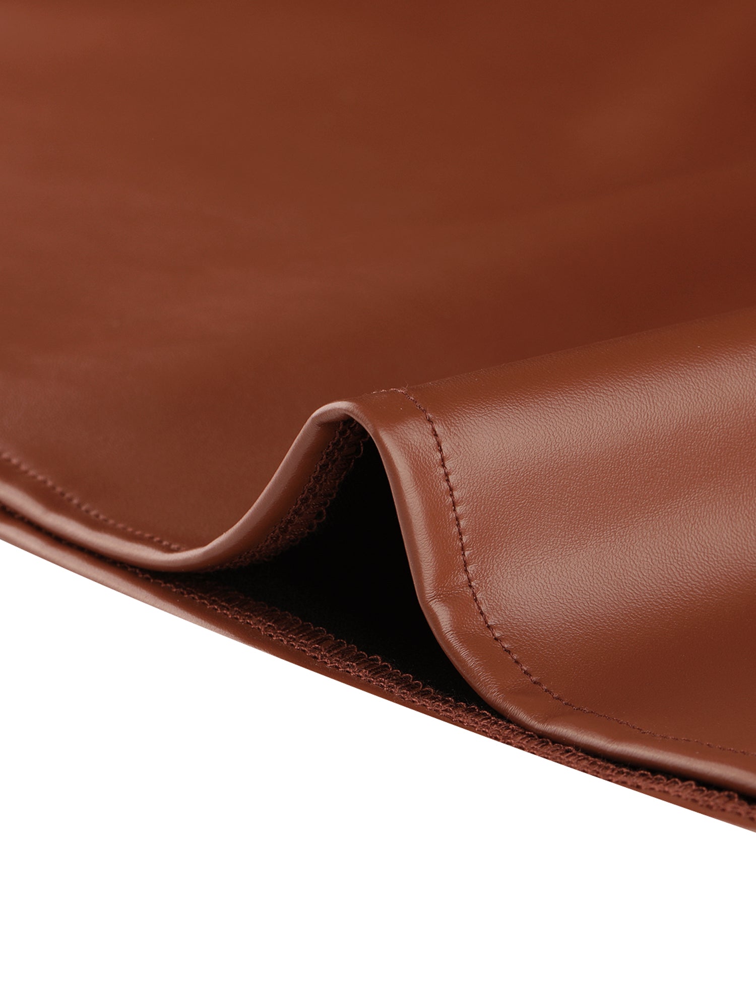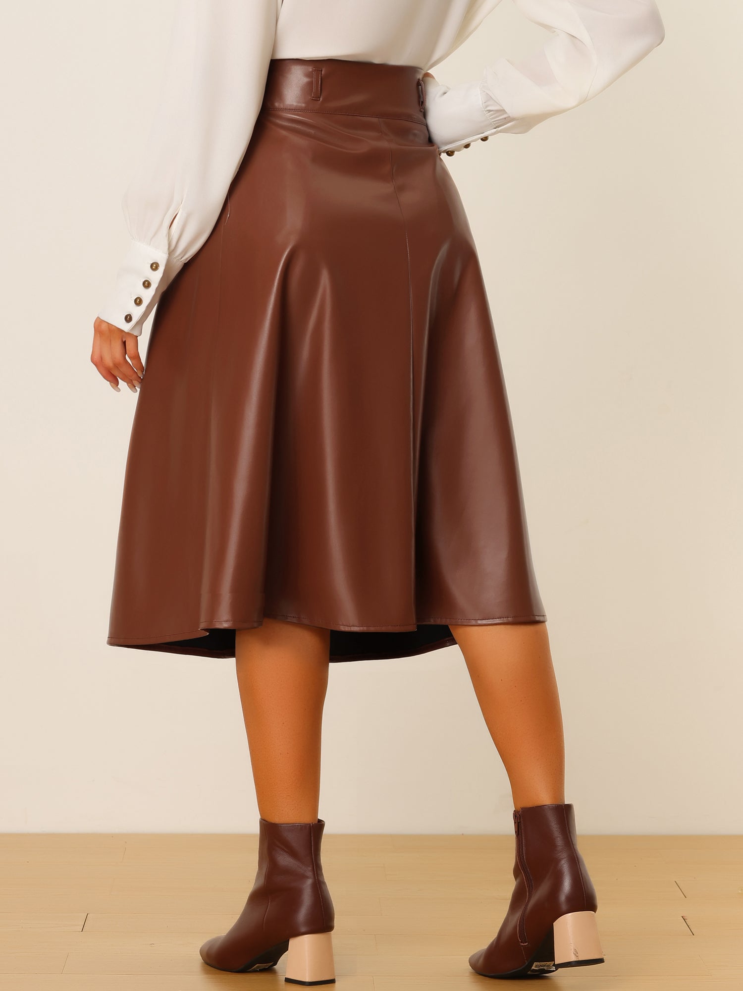 Women's Faux Leather High Waist Belted PU A-Line Midi Skirt