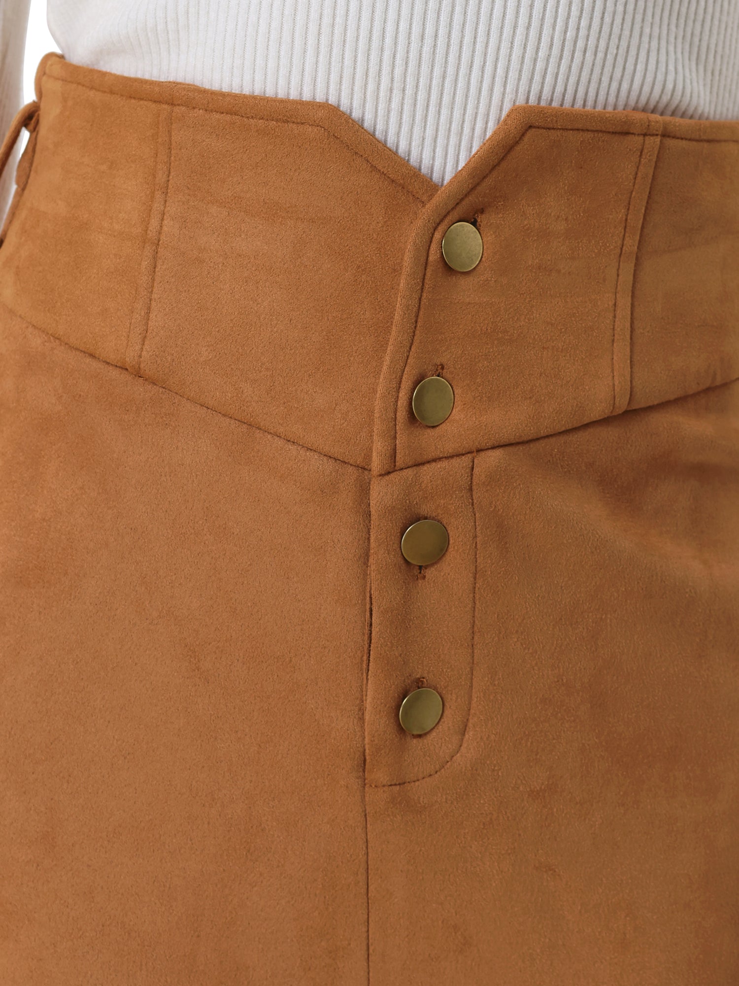 Women's Faux Suede Skirt High Rise Button Front A-line Slit Skirt