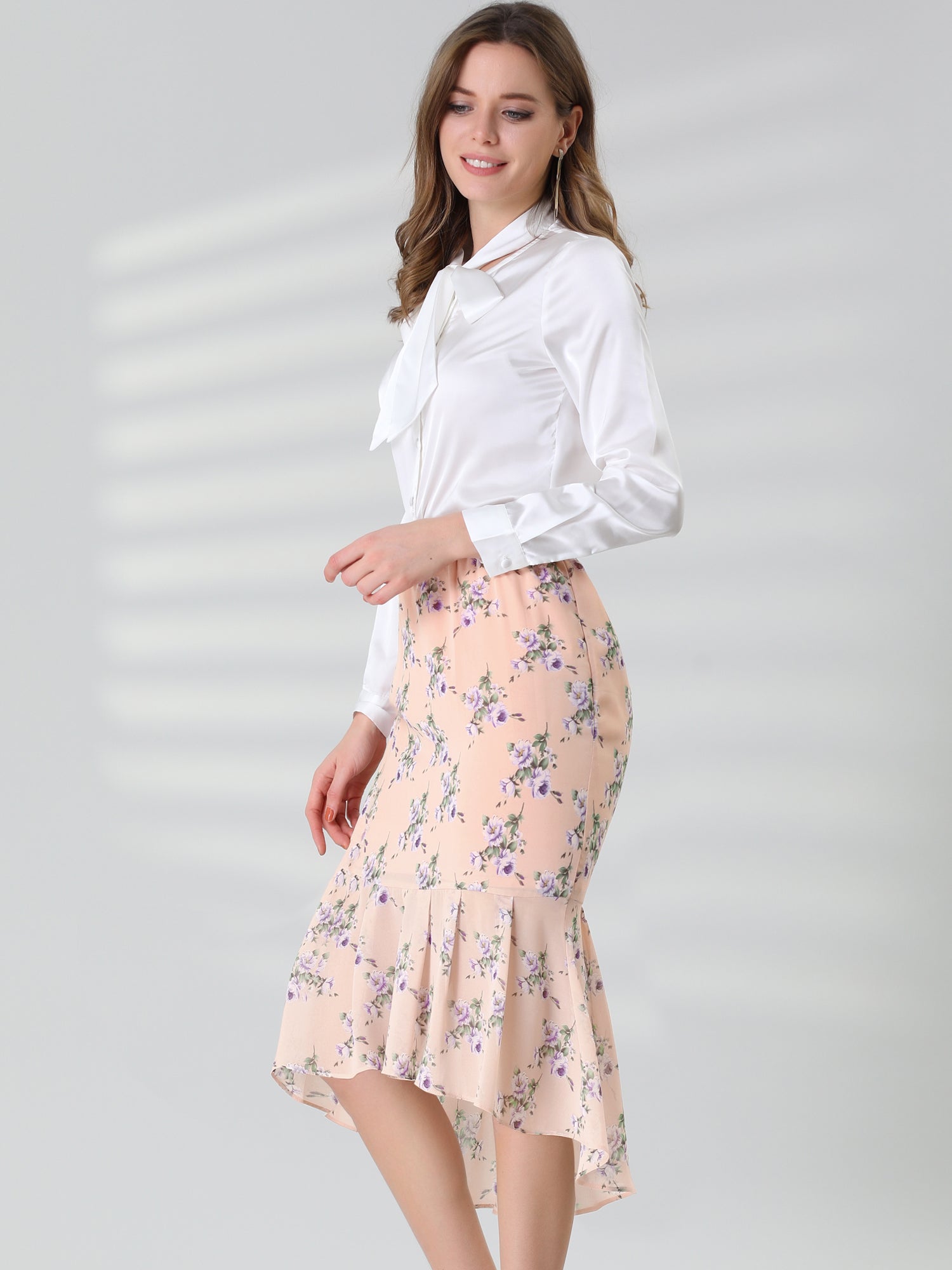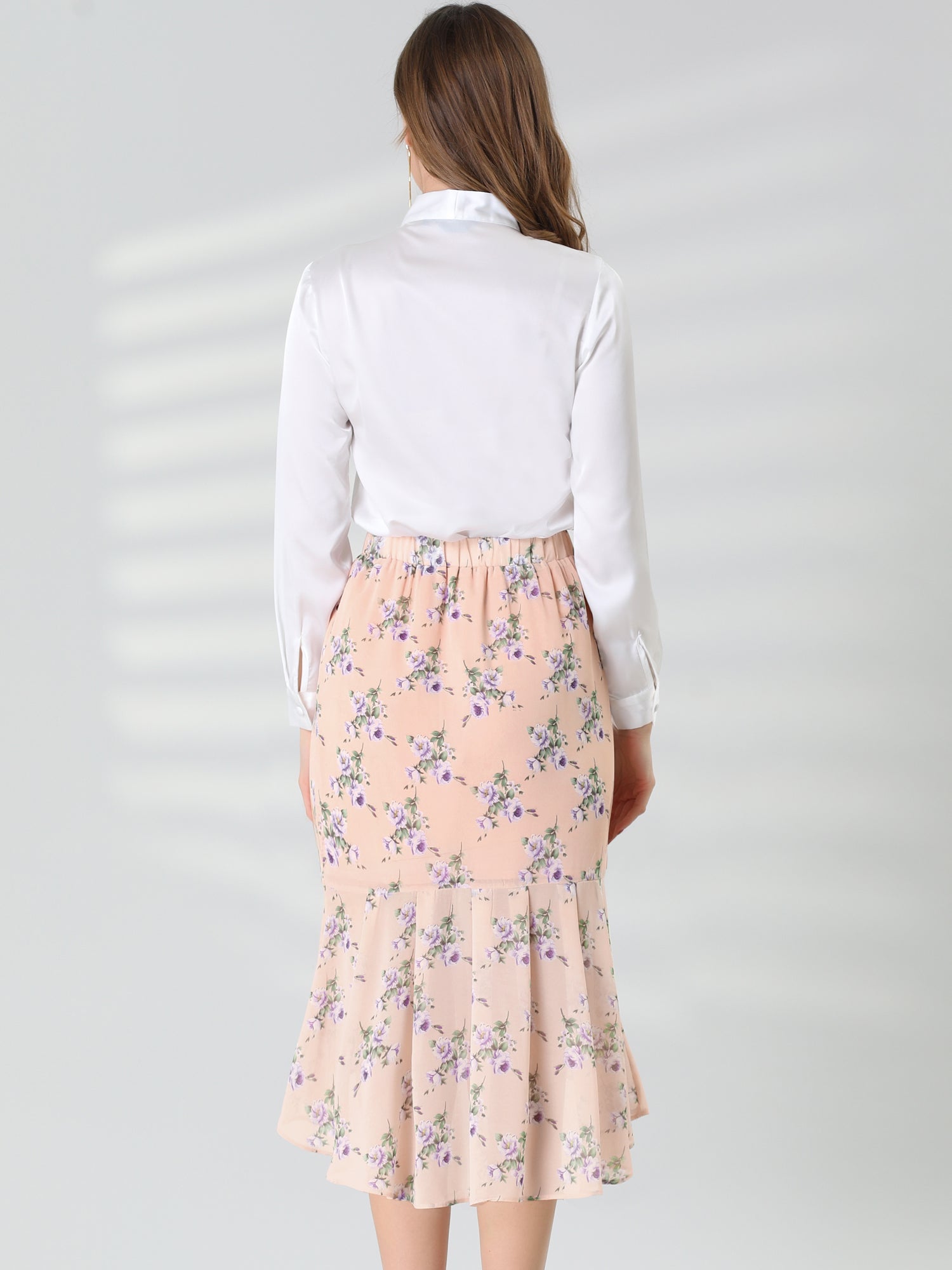 Women's Floral Elastic Waist Bodycon Ruffle Hem Chiffon Fishtail Skirt