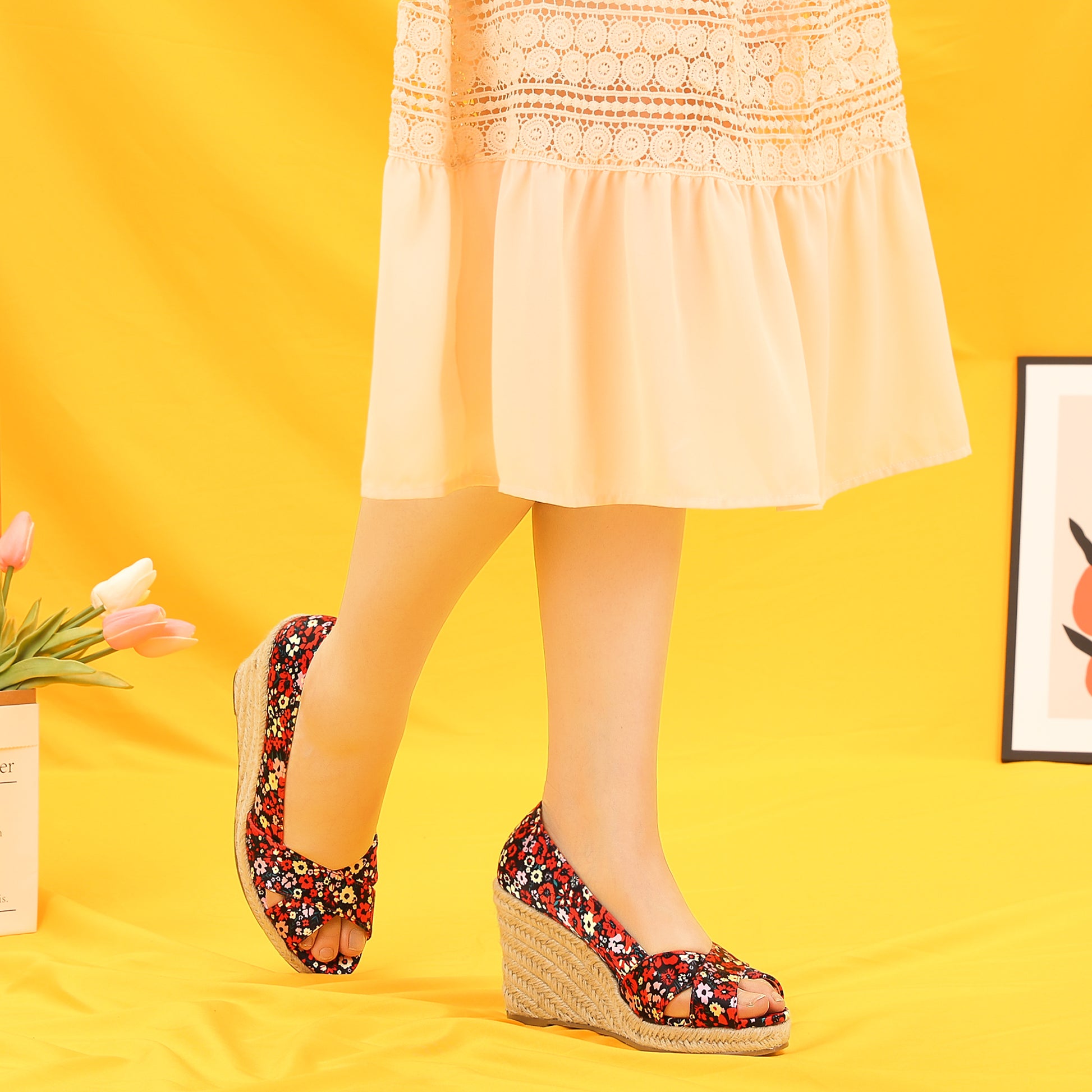 Women's Floral Peep Toe Platform Pumps Espadrille Wedge Sandals